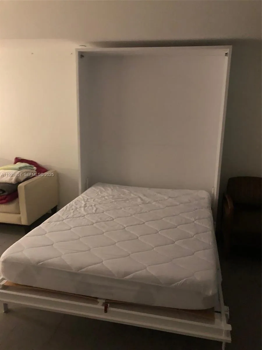 Spacious partially furnished studio featuring high ceilings, an expansive terrace with high-impact sliding panoramic windows, stainless steel appliances, a washer & dryer, a microwave oven, and included basic cable, internet, and water. The unit comes with a Murphy bed, a round glass table with three chairs, and an open rack divider separating the kitchen and living area. Enjoy over 3,000 sqft of resort-style amenities, including three swimming pools (rooftop and two on the 9th floor), indoor and outdoor jacuzzi, sun deck, state-of-the-art gym with water view, spa, sauna, two massage rooms, yoga garden, racquetball and volleyball courts, social room, children’s playground, and business center. The building offers 24-hour valet, security, and concierge services, and is within walking distance to the Metro Mover, with beautiful views of the Port of Miami and Downtown.