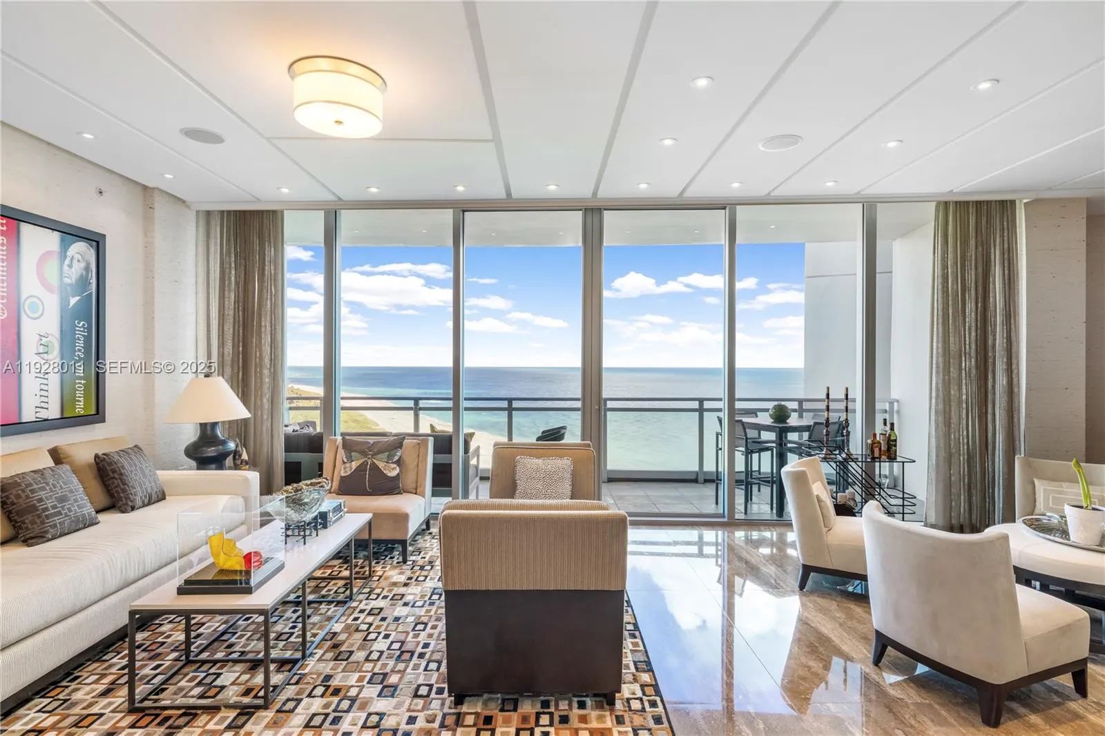 Beautifully designed by award-winning Fanny Haim & Associates, this oceanfront residence spans over 3,000 SF and showcases sweeping Atlantic and Intracoastal views. High-quality, innovative design defines the expansive flow-through layout, offering true sunrise-to-sunset living from three generous balconies with panoramic north, south, east, and west exposures and breathtaking western sunsets. Embrace the elegance of this tastefully designed space, featuring luxurious finishes throughout from Italian marble floors to custom wall treatments and refined, spa-inspired bathrooms. Floor-to-ceiling glass fills the open living and dining areas with natural light, while the designer kitchen is appointed with premium appliances and sophisticated finishes. The primary suite features terrace access, dual walk-in closets, and a spa-style bath. Ideally located at the quiet end of Bal Harbour, surrounded by the ocean, Intracoastal, and inlet, the residence is part of a boutique-style Ritz offering a separate owners’ entrance and a distinctly private, residential atmosphere. Residents enjoy luxury beachfront amenities including a dedicated owners’ pool, spa, fitness center, two on-site restaurants, concierge, valet, and direct beach access all just moments from the Bal Harbour Shops.