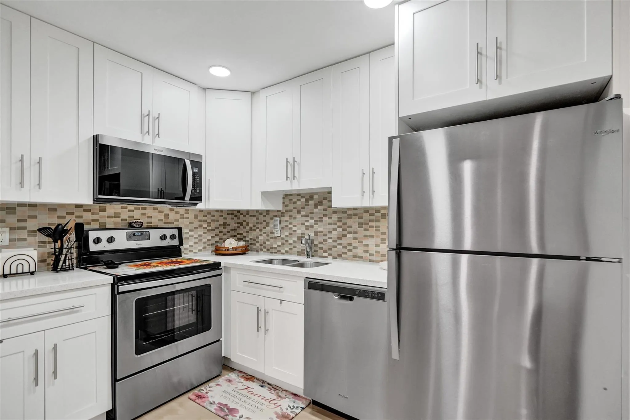 Beautifully updated 2-bedroom, 2-bath condo in Sabal Palm Village, a 55+ active adult community. This light and bright home features large tile flooring throughout, an updated kitchen with quartz countertops, white cabinetry, and stainless steel appliances. Additional upgrades include updated bathrooms, a new electrical panel, impact windows, and an AC and water heater only 5 years old. Enjoy the spacious patio with storage. Sabal Palm Village offers a welcoming clubhouse with billiards and an exercise room, plus plenty of activities with a pool, tennis, pickleball, and shuffleboard. Move-in ready and waiting for you to enjoy the South Florida lifestyle!