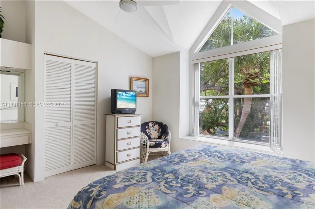 Rare corner unit, Bright, Spacious 3 Bedroom 2.5 Bath, Model Suite. Beautiful natural lighting fills this two-story townhome boasting tall cathedral ceilings with skylights and Beautiful Tropical views. Walk-in closets throughout all bedrooms. Porcelain tile floors, brand new carpet, 2022 water heater and newly painted first floor. Original owners, very well maintained, clean nonsmoking environment. Closest to Private Beach access, along with many other amenities such as Tennis, Pickleball, Swimming, Fitness room, Billiards, Ping-Pong, Grand piano and many social activities.