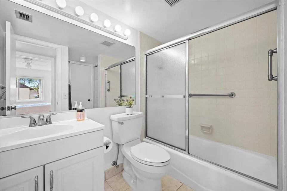 :Welcome to your new home! Discover the charm of this inviting 2-bedroom, 1-bath haven that’s ready for you to move in. Whether you’re dreaming of spending winters in the warmth of Palm Beach County or seeking the perfect spot to kick off your sandals, you’ve found it. Nestled at the end of a quiet cul de sac, this unit offers a uniquely private setting. Step onto the awesome screened-in patio and soak in the tranquility as it overlooks a picturesque park-like setting. Inside, you’ll find beautiful tile flooring complemented by plush carpeting in the bedrooms. The convenience of a separate laundry room with a full-size washer and dryer adds to the practical allure. Safety is a priority with accordion shutters adorning all windows and doors, ensuring excellent hurricane protection