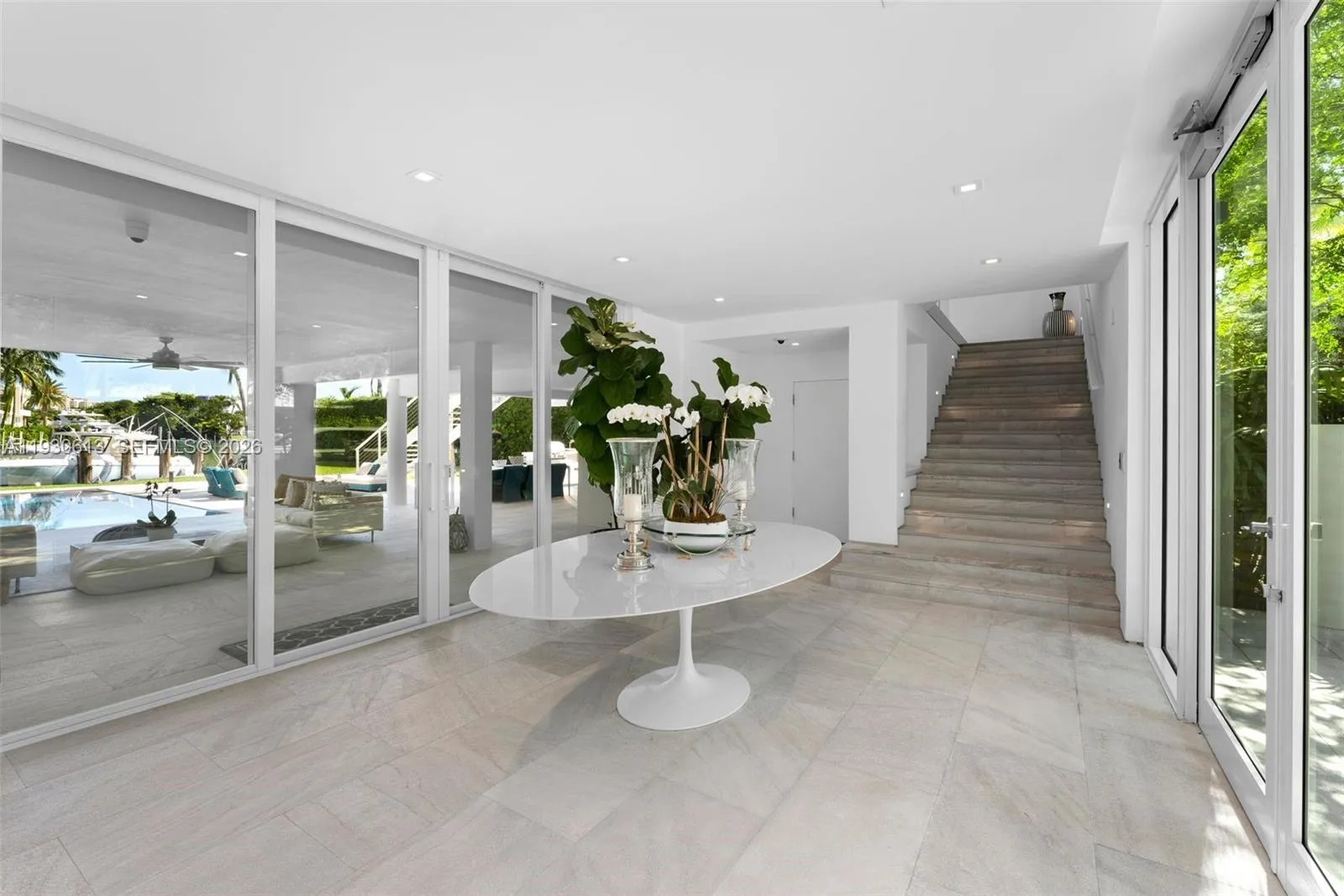 Offering approximately 8,500 square feet of construction, this spectacular waterfront estate on coveted Mashta Island is a rare expression of space, privacy, and coastal elegance. Fully remodeled and designed for effortless indoor-outdoor living, this three-level contemporary residence enjoys direct ocean access, panoramic views of Smugglers Cove and Biscayne Bay, and constant ocean breezes that create a true sense of serenity.rnSet on a 17,012-square-foot lot in one of Key Biscayne’s most exclusive and tranquil enclaves, the property is surrounded by water, light, and lush tropical landscaping, offering remarkable privacy and a peaceful island atmosphere. The residence features 8,544 square feet of total area, including garage and terraces, with expansive open living spaces, refined finishes, abundant natural light, and impeccable craftsmanship throughout. The flexible floor plan allows for effortless reconfiguration to accommodate additional rooms and customized living areas. World-class amenities include a private dock for boating enthusiasts, resort-style pool, summer kitchen, spectacular covered entertainment level, elevator, gym, garage, and extra parking, creating an exceptional setting for both grand entertaining and everyday enjoyment. This is more than a home…it is a private waterfront sanctuary, offering the rare opportunity to experience the very best of island living in one of Key Biscayne’s most prestigious locations.