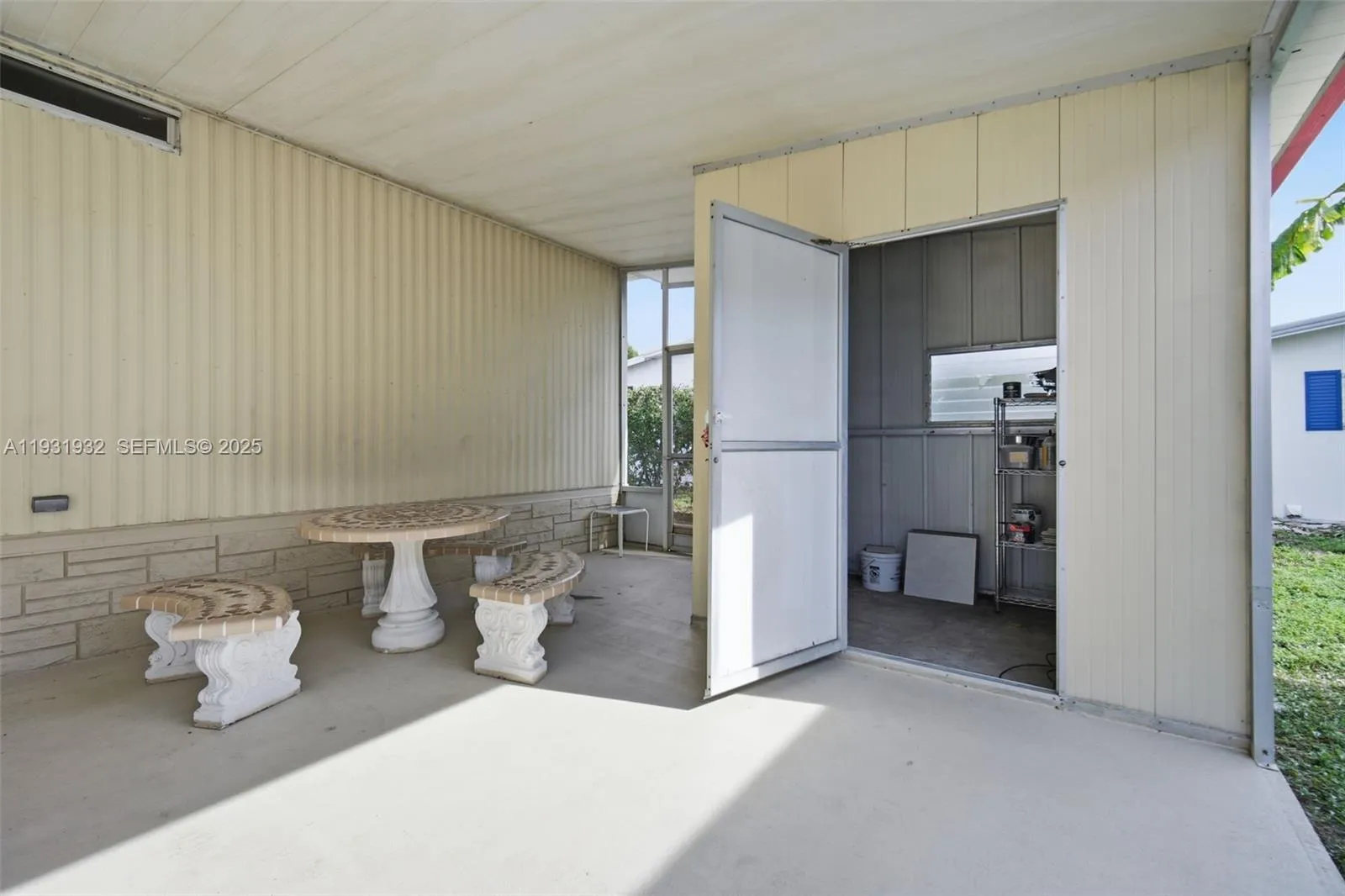 WELCOME TO THIS WELL-MAINTAINED AND LARGE 2 BEDROOM, 2 BATHROOM HOME LOCATED IN THE DESIRABLE RAVENSWOOD ESTATES. THE HOME OFFERS A SPACIOUS LAYOUT WITH CERAMIC TILE FLOORING THROUGHOUT AND AN ABUNDANCE OF NATURAL LIGHT. AN EXTRA-LARGE CARPORT PROVIDES PARKING FOR UP TO FOUR VEHICLES AND INCLUDES A CONVENIENT STORAGE SHED. THE ENCLOSED PORCH FEATURES A SEPARATE ENTRANCE AND SINK/WET BAR, OFFERING FLEXIBLE SPACE THAT CAN EASILY BE CONVERTED INTO A THIRD BEDROOM, HOME OFFICE, OR GUEST AREA. ENJOY A PRIVATE BACKYARD WITH MATURE HEDGES, PERFECT FOR RELAXING OR ENTERTAINING. UPDATES INCLUDE NEWER APPLIANCES (APPROXIMATELY 4 YEARS OLD) AND A WATER HEATER REPLACED ABOUT 3 YEARS AGO. LOW ASSOCIATION FEE OF JUST $70 PER MONTH, AND YOU OWN THE LAND. COMMUNITY AMENITIES INCLUDE A CLUBHOUSE AND A LARGE, WELL-MAINTAINED POOL. IDEALLY LOCATED APPROXIMATELY 10 MINUTES FROM DANIA AND HOLLYWOOD BEACHES, SHOPPING, DINING, AND THE GUITAR HOTEL. MOTIVATED SELLER — EASY TO SHOW, SCHEDULE YOUR SHOWING TODAY.