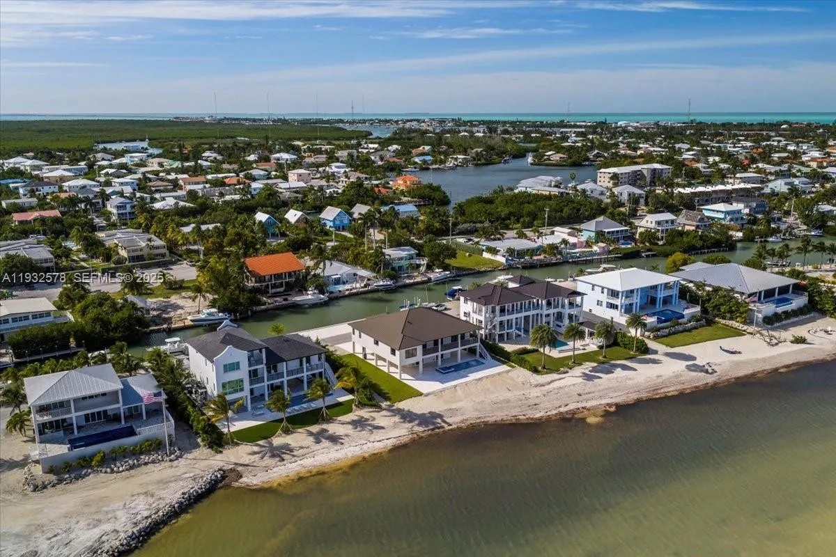 * JUST COMPLETED SEPTEMBER 2025 * * SELLER FINANCING AVAILABLE *Nestled on the exclusive, gated island of Sunrise Isles in Marathon, Florida Keys, this magnificent new construction oceanfront estate redefines luxury living. With only 20 residences on this private island, you’ll experience a rare blend of privacy and community, surrounded by the serene beauty of the Keys. This exquisite 5-bedroom, 4-bathroom residence spans 3,415 square feet of meticulously crafted living space, designed to capture stunning ocean views from every angle. Set on over 20,000 square feet of prime waterfront land, the property features 110 feet of sandy beach oceanfront shoreline and an additional 110 feet of protected dockage along a private canal ideal for boating enthusiasts seeking convenient, safe access to open waters.