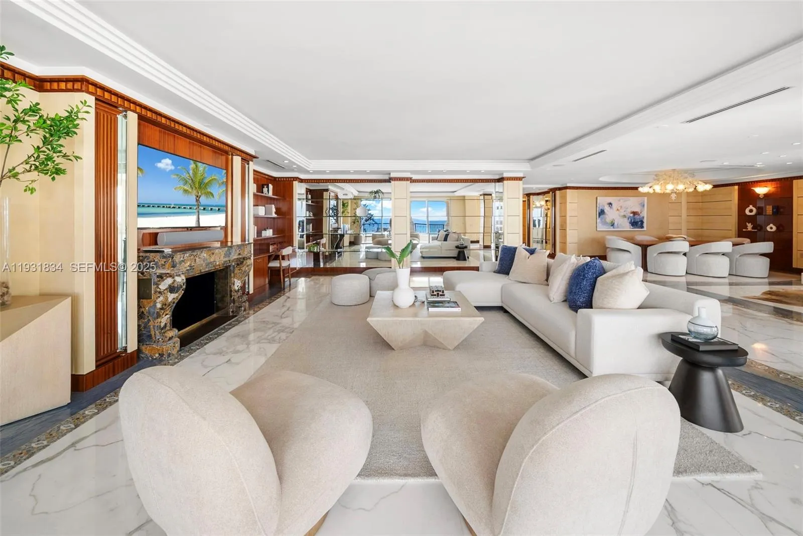 An extraordinary beachfront rental exemplifying the pinnacle of Fisher Island luxury and European sophistication. This expansive 5-bedroom, 6-bath residence features refined European finishes, exquisite craftsmanship, and beautifully detailed marble floors throughout. Every bedroom is ensuite with elegantly appointed marble baths. A grand formal living and dining room is ideal for entertaining, complemented by a chef’s eat-in kitchen with top-of-the-line Miele appliances. The primary suite offers dual bathrooms and dual walk-in closets, finished in the finest marble. Additional highlights include a private theatre, richly paneled wood library, expansive terraces, and a spectacular rooftop terrace. Enjoy panoramic views of the Atlantic Ocean, Downtown Miami, the Intracoastal, and Miami Beach. Generous storage, partial furnishings, and access to Fisher Island’s world-class amenities complete this exceptional offering.