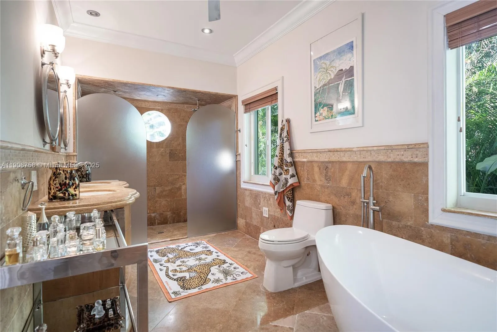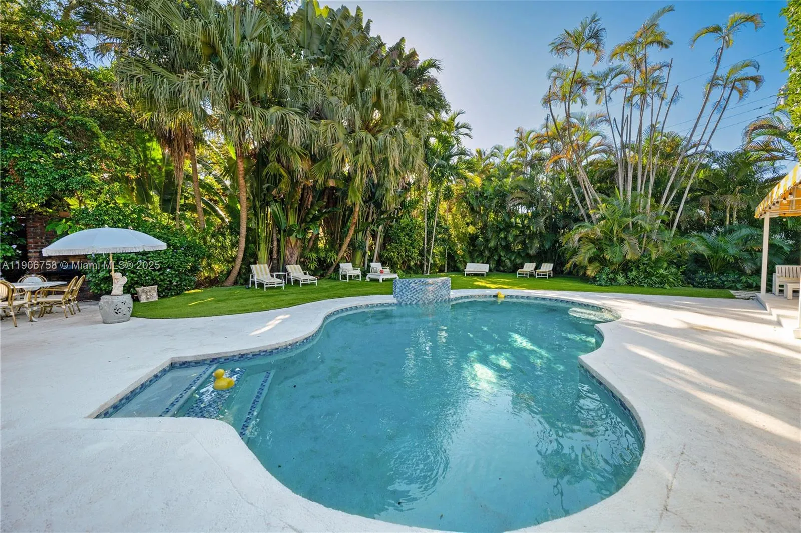 A rare architectural gem in Miami Shores, where timeless Art Deco elegance meets modern European flair. Fully renovated yet rich in original character, this 4-bed, 4.5-bath residence sits on a 14,300 SF lot surrounded by lush privacy. Floor-to-ceiling impact windows flood the interiors with light, revealing terrazzo floors, stone accents, and a marble dining salon that blend Riviera sophistication with California ease. The heated saltwater pool, framed by iconic yellow awnings, creates a resort-style oasis made for entertaining. The expansive primary suite features dual walk-ins and a seamless indoor-outdoor flow. Steps from cafés, boutiques, and top schools, yet tucked in complete privacy… it’s a slice of the South of France, reimagined in Miami. No flood insurance required.