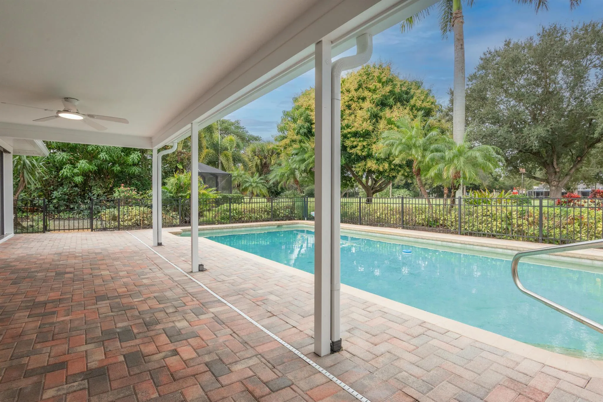 Now presenting the newest house on the market located at the Yacht & Country Club of Stuart. This move-in ready pool home offers an exceptional Florida lifestyle.This desirable property features three bedrooms and two bathrooms with a split floor plan. The master suite includes dual sinks, his and her closets, and sliding doors leading to the outside patio. The home has been recently updated with several high-value features:- Brand new metal roof- New luxury vinyl flooring throughout- New hot water heater- Granite countertops in the kitchen and master bath- Two-car epoxy garage floor and golf cart garage Nestled on a quiet street overlooking the 11th fairway, the property offers excellent golf course views and the security of a gated community. This is a must se