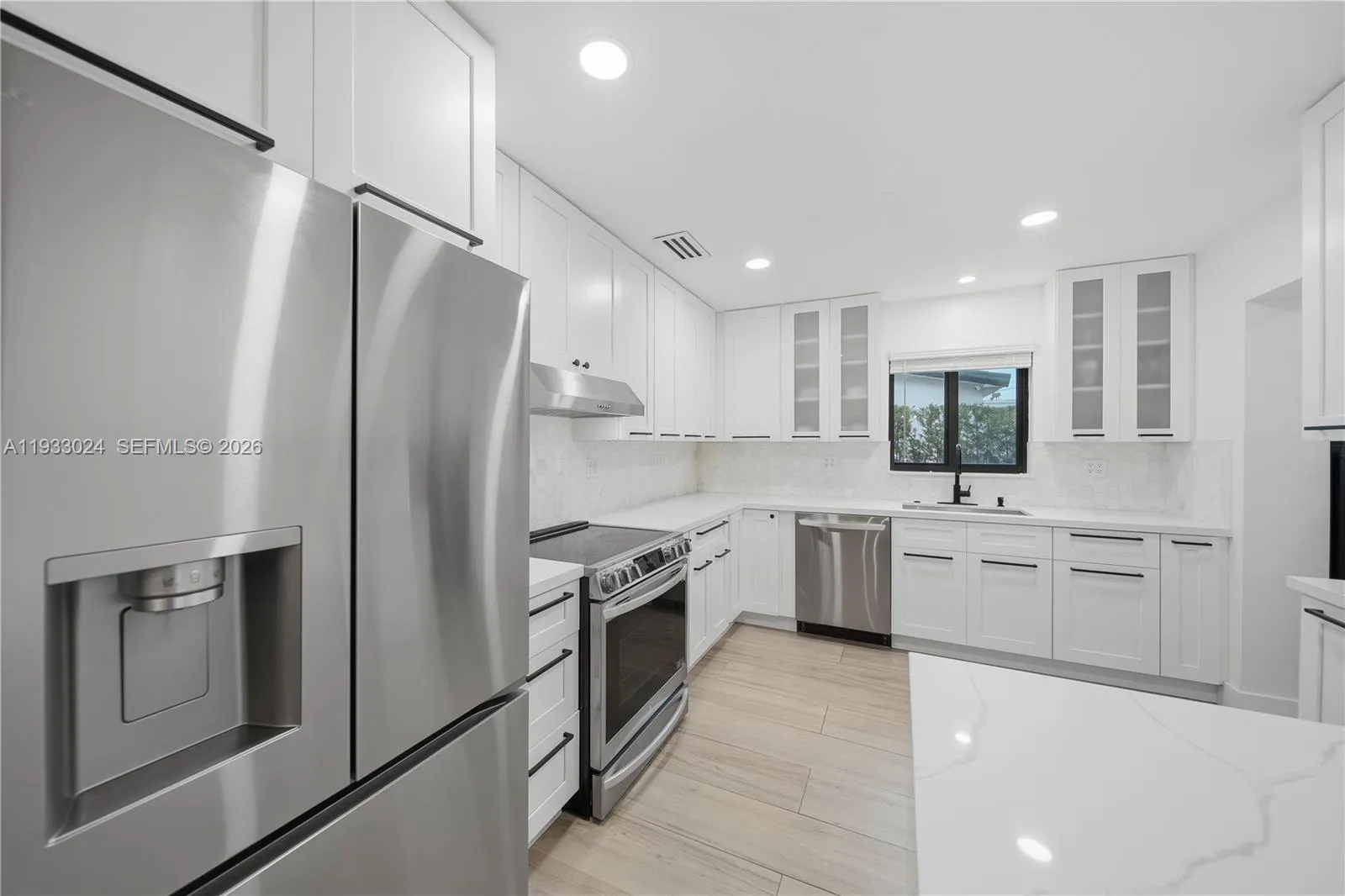 Remodeled Westchester Single Family Home with 1,809 sq ft Living Area per last Appraisal, 2,300 sq ft Total Square footage including the covered back patio and front porch. Featuring 10″ x 72″ wood look porcelain tiles throughout, White Shaker Style Wooden kitchen cabinetry with Quartz countertops and Marble tiled backsplash. PVC Sewer/Drain Pipes, Generac generator, Covered patio, In-law Quarter / Studio with it’s own private entrance, kitchenette, and washer/dryer. All impact windows & Doors, Formal living area, kitchen open to dining area and family room. The Laundry room offers lots of cabinets for storage and additional counter space from the kitchen. Showers in two bathrooms have Grohe shower systems. There is a 12 x 20 storage shed and a large mango tree in the yard. Located to many shopping centers, major highways, dining options, Florida International University and much more. Call today to schedule an appointment.