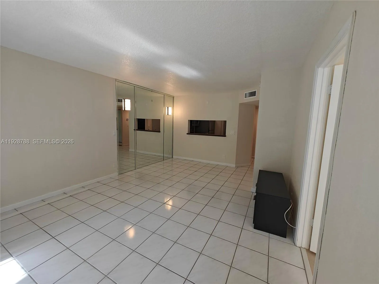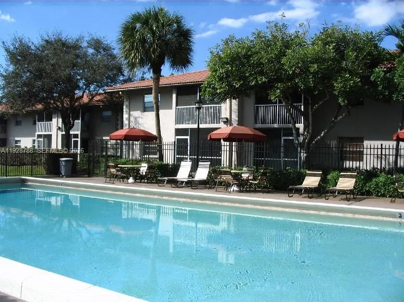 Very private, renovated first-floor corner unit with extra windows in the well-maintained Palm Village community. This bright, move-in-ready condo features updated kitchen cabinets, stainless steel appliances, a full-size washer and dryer, and newer A/C. Tile flooring throughout—no carpet—and fresh paint create a clean, modern feel. Enjoy a screened patio with roll-down shutters overlooking a quiet, south-facing garden area. Palm Village is a peaceful, well-kept community offering a large pool and a recently renovated, fully equipped fitness center with new machines. Assigned parking is conveniently located near the unit. The property is professionally maintained with a service contract covering all systems and appliances. Excellent landlord. Fast association approval.