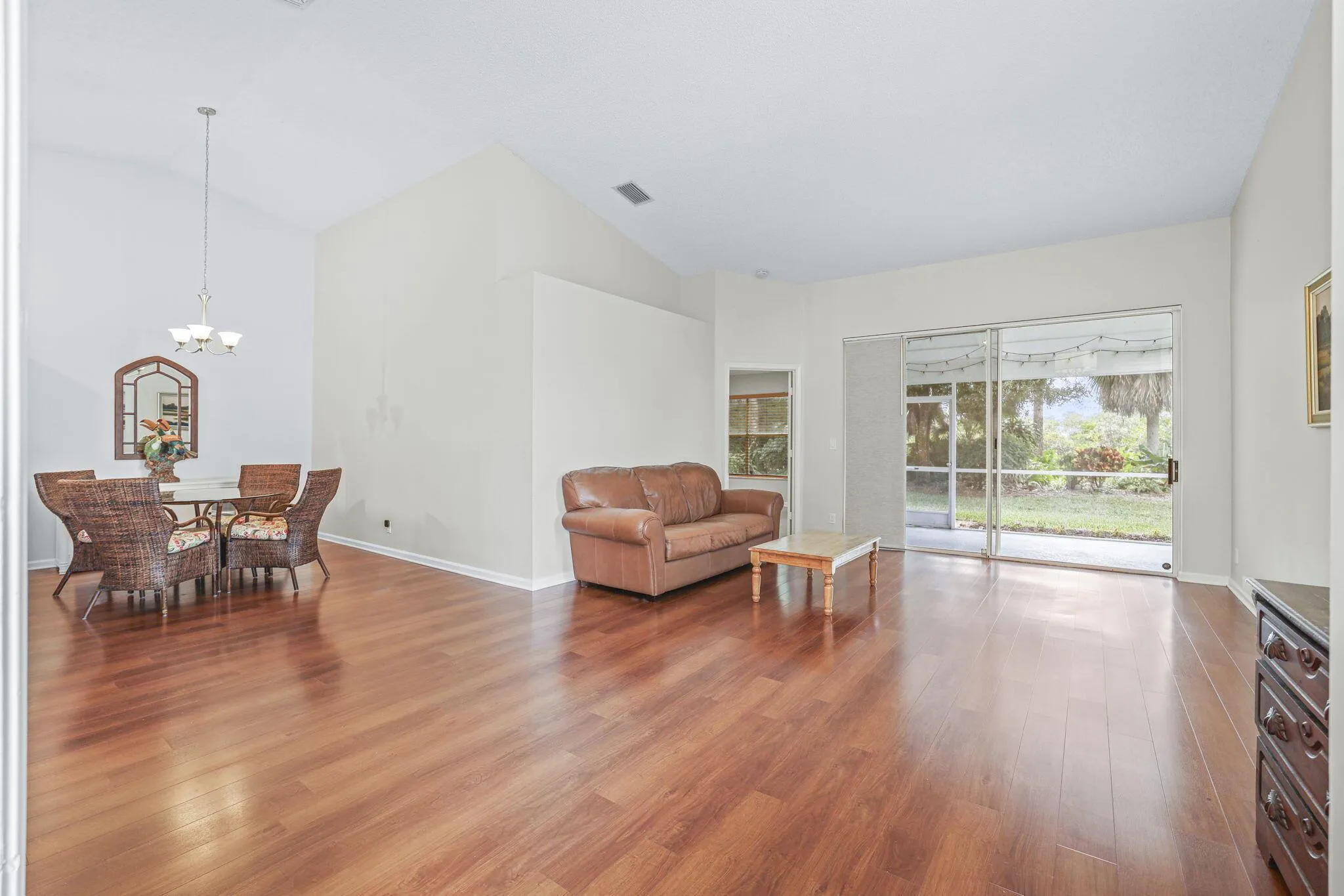 Single-story living in the coveted North Passage community. This clean townhome offers privacy, tranquility, and timeless appeal. The split floor plan includes 2 bedrooms, 2 baths, and a versatile den easily converted to a 3rd bedroom. Vaulted ceilings, LVP & tile flooring throughout, and a sun-filled kitchen with skylight and breakfast area create a light, airy ambiance. The screened patio captures cooling river breezes from the Loxahatchee River and overlooks a lush natural setting. Notable upgrades include a 2011 roof, new electrical panel 2025, and 2022 A/C. Gated amenities include clubhouse, pool, tennis, pickleball, fitness room, and optional golf memberships at Riverbend. Close to many excellent restaurants, shops and PBI Airport.