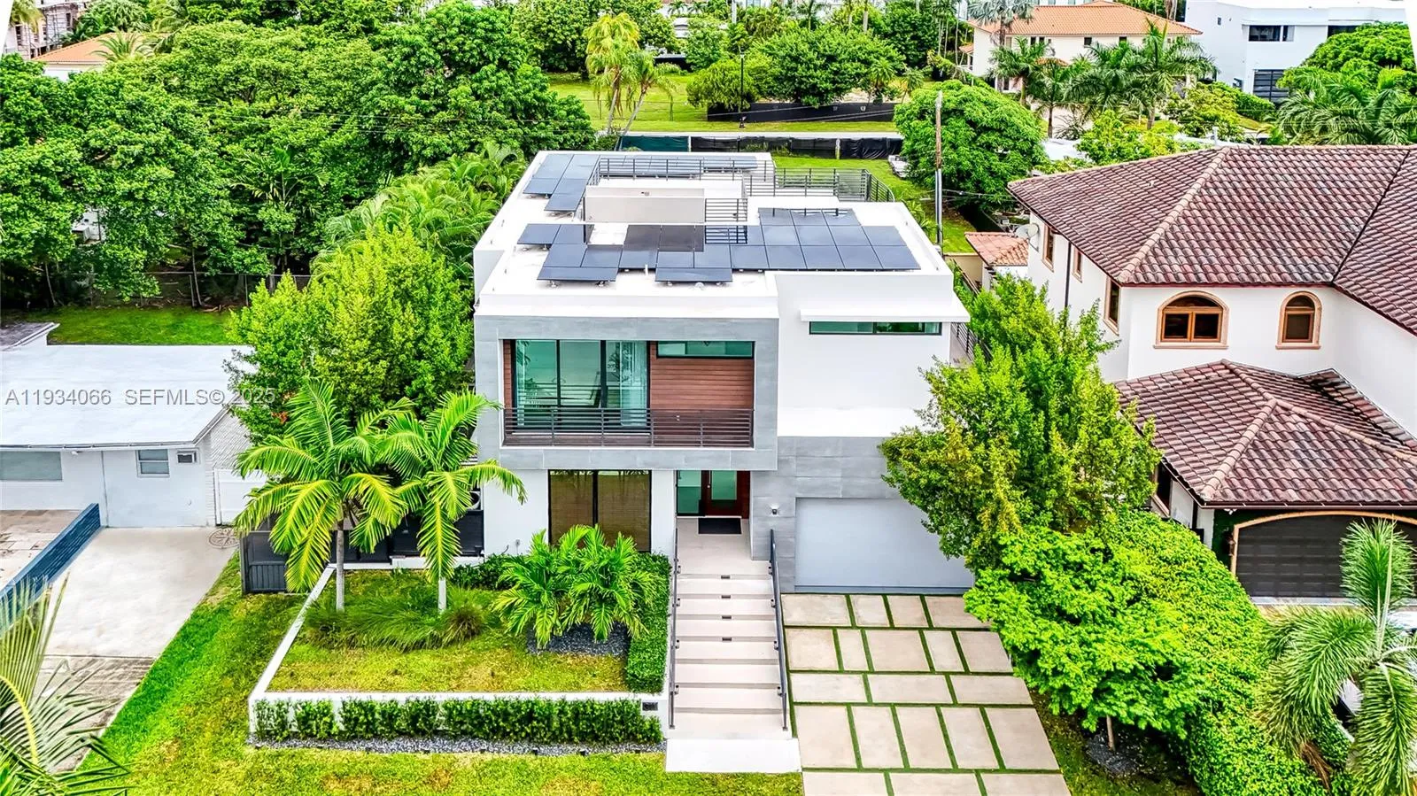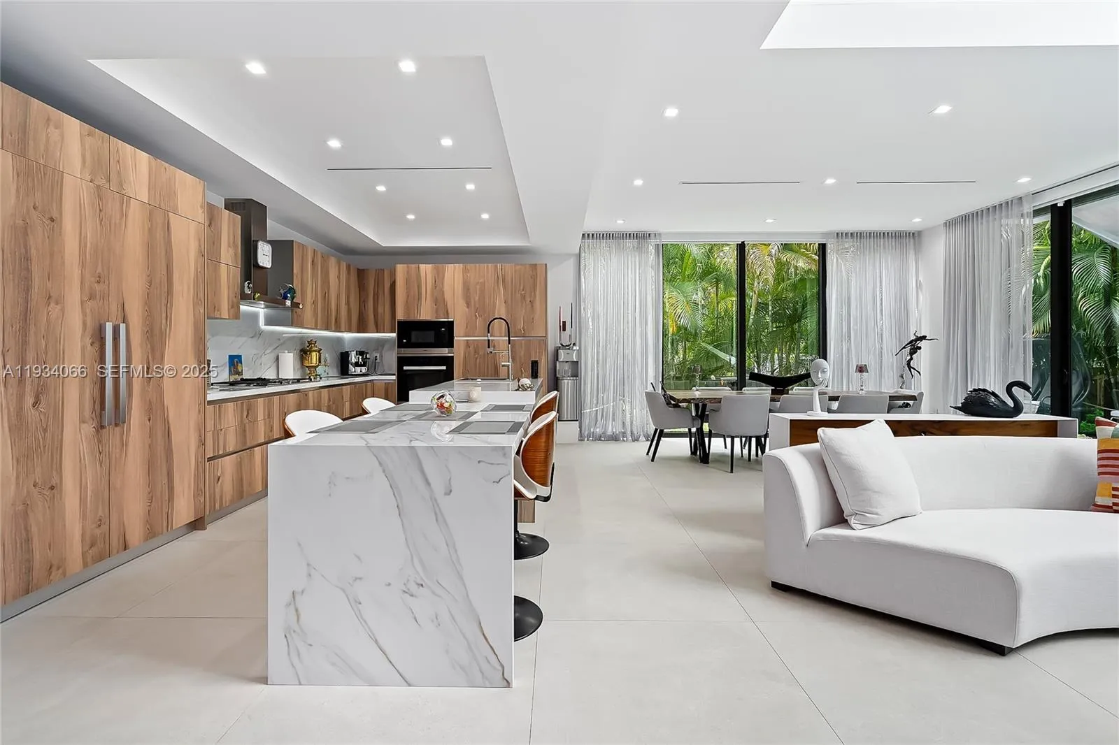 Centered in the prestigious Golden Shores neighborhood of Sunny Isles Beach, this stunning residence at 311 189th Street presents an unparalleled opportunity for luxurious Florida living. Italian designer Turnkey fully furnished and ready to move in. Boasting an expansive layout spanning approximately 4,093 SF, this newly built, 5 bedroom/5.5 bathroom contemporary masterpiece offers a seamless blend of sophistication & comfort. The open-concept layout connects the living room, dining area, & gourmet kitchen with top-of-the-line appliances, marble waterfall island and cascading crystal chandelier. The backyard oasis includes lush landscaping & a sparkling pool, generator, solar panels while the rooftop deck features a summer kitchen offering 360° views of the bay, ocean and the city.