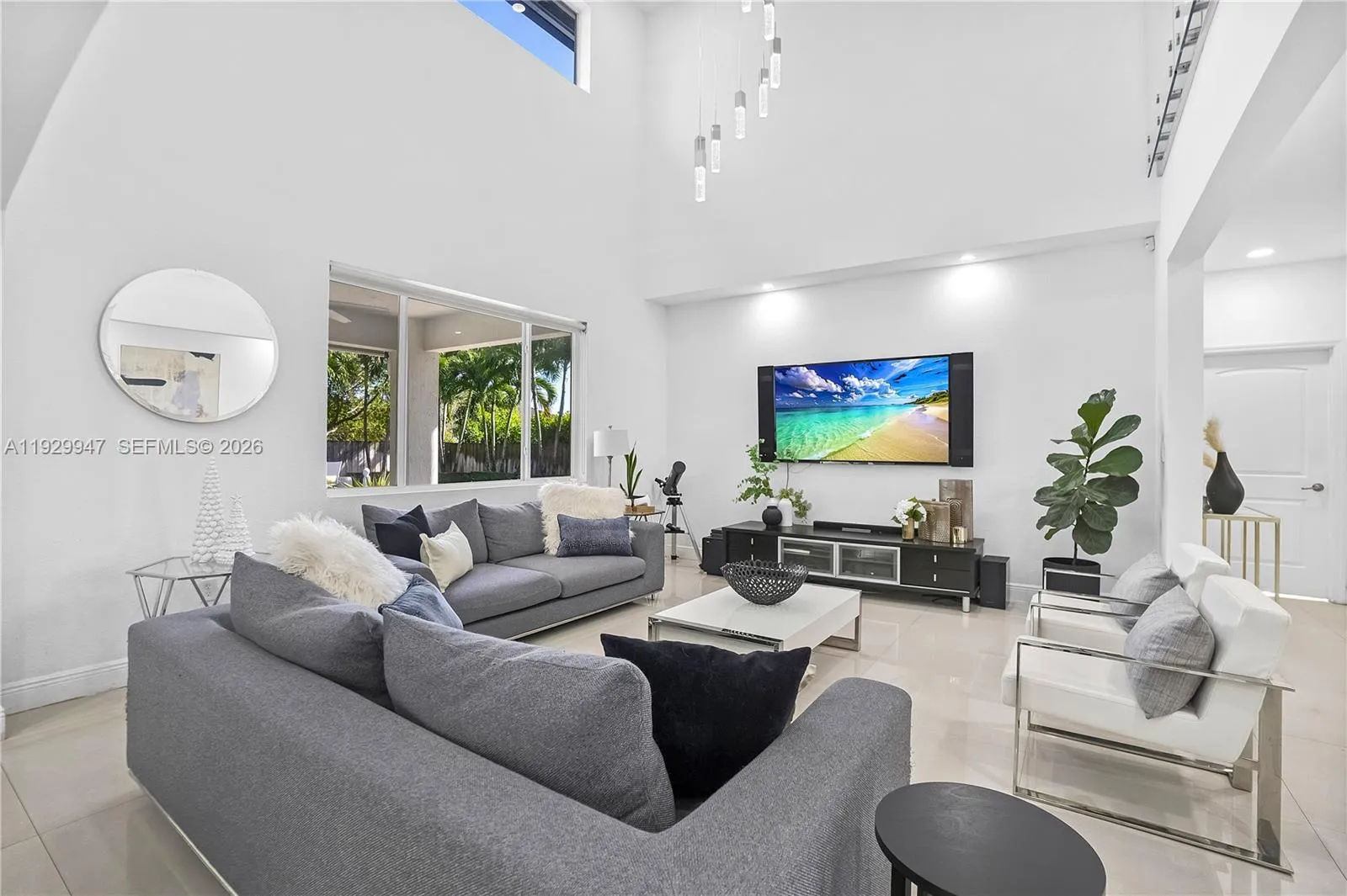 Beautifully remodeled, spacious home on an oversized corner lot. Featuring a great layout with high ceilings, this residence offers 5 bedrooms, 3 bathrooms, and 3 reception areas. The chef’s kitchen includes stainless steel appliances and large pantry. Enjoy a beach-style entry to a heated saltwater pool and spa with smooth finish and automated lighting. Outdoor kitchen with 36″ gas and charcoal BBQ, hibachi grill, refrigerator, and ice maker. Additional highlights are an insulated, air-conditioned 3-car garage with cameras, professional half-size basketball court, 24′ porcelain tile floors, LED lighting, CAT5 wiring, covered front and back porches and a striking glass staircase. Turnkey and ideal for entertaining.