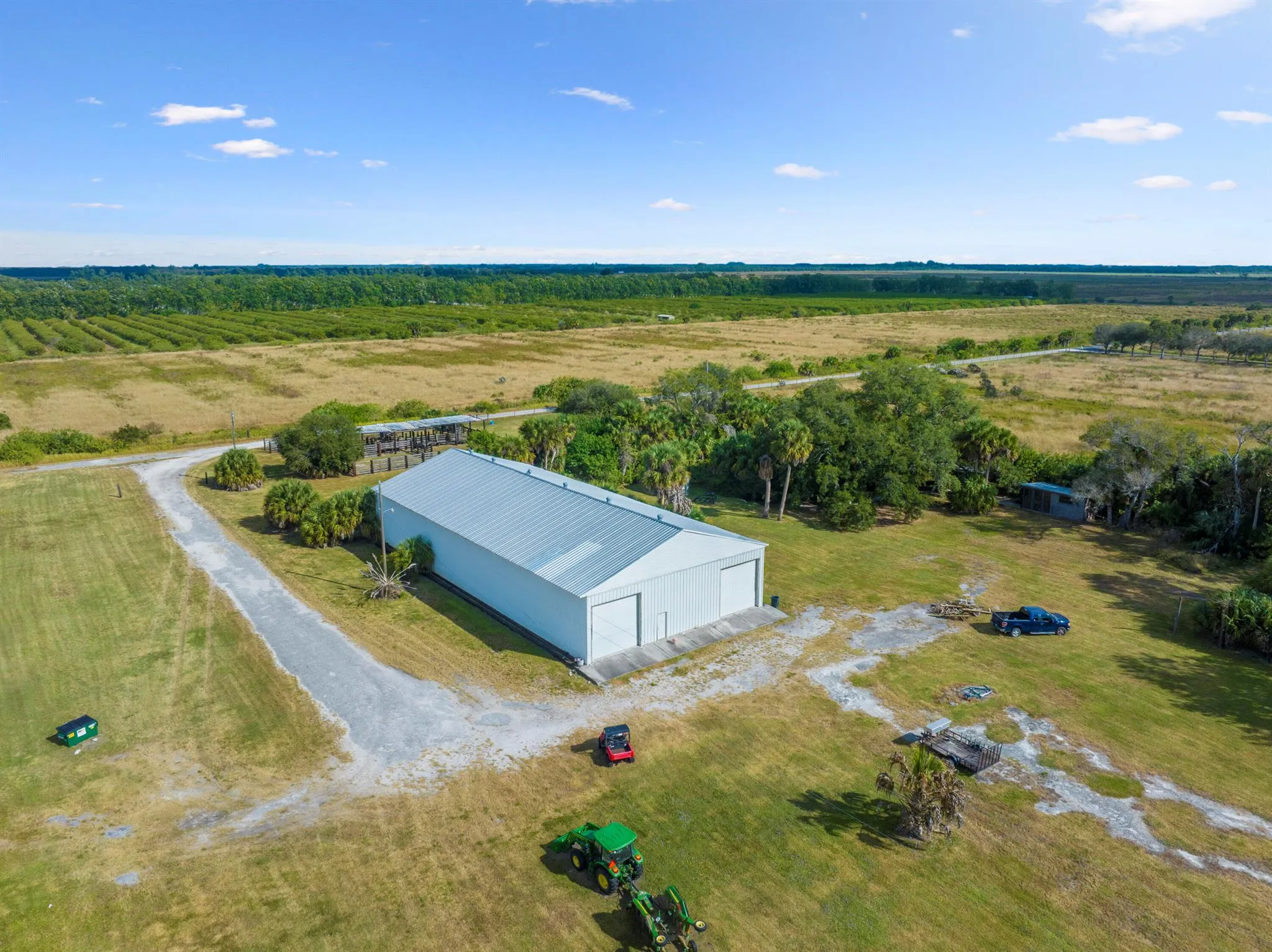 LUXURY PROPERTY AUCTION: 16-JAN. Starting Bids Expected Between $750k-$1.5M. A sanctuary of tranquility, this 133-acre ranch offers a rare opportunity in Vero Beach’s countryside. Ideal for ranchers, equestrians, & outdoor enthusiasts, the estate features a meticulously maintained 1,842+/- SF, 3 bed/2 bath residence w/ updates & a private guest studio. Covered porches overlook a 2-acre stocked lake w/ dock. Infrastructure incl a 7000 SF metal building, fencing cow pens, multiple wells, oak-lined paved drive, & a 32X22-ft chickee hut-minutes from equestrian & polo venues, yet completely secluded.