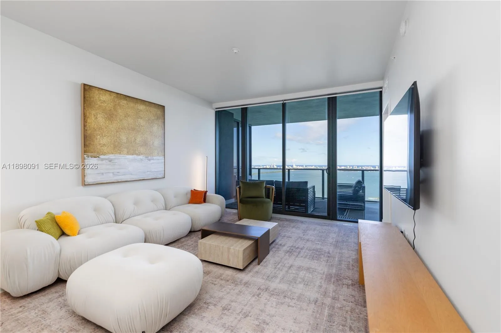 Bayfront Lifestyle at Aria Reserve Move into this spectacular 2-Bed + DEN, 3-BATH residence on the 42nd floor, offering 1,571 sq.ft. of modern luxury and breathtaking panoramic views of Biscayne Bay, the Miami Beach skyline, and the Atlantic Ocean. This ready-for-occupancy home features private elevator entry, 10-foot floor-to-ceiling windows, and an expansive terrace perfect for sunrise views and outdoor living. The DEN offers flexibility as a third bedroom or home office. rnEvery detail has been meticulously curated with high-end custom upgrades throughout. 2 assigned parking spaces and exclusive access to world-class amenities, including:rnSemi-Olympic pool overlooking the bay, State-of-the-art fitness center & spa, Wine lounge & private tasting room, Tennis and paddle courts and more!!