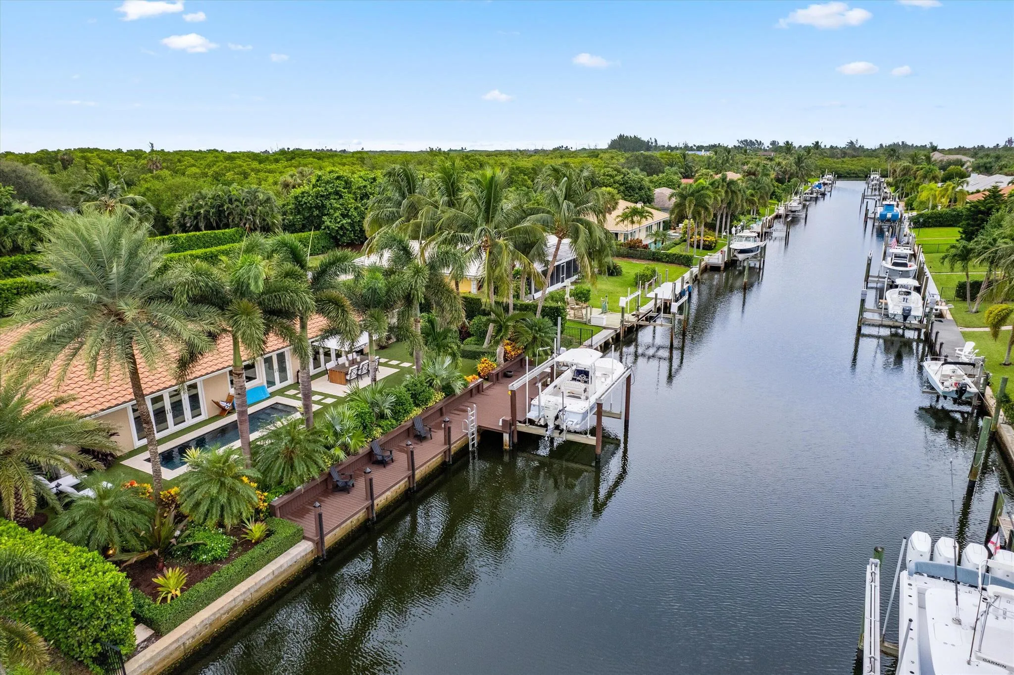 🌴 Luxuriously Renovated Waterfront Pool Home in The Soundings, Hobe Sound, FL 🌴 Discover coastal living at its finest in this impeccably renovated 3-bedroom, 2-bath pool home with a 2-car garage, located in the highly sought-after Soundings neighborhood of Hobe Sound. This waterfront gem offers 110 feet of frontage and is a boater’s paradise, featuring two boat lifts (24K)with electric and water hookups–all with no fixed bridges to the Intracoastal and ocean. 🏡 Interior Highlights: Gourmet kitchen with Cristallo quartzite countertops, top-of-the-line Wolf & Sub-Zero appliances, including a 48-inch 8-burner dual-fuel Wolf range (under warranty)Open-concept living space with 2×5 Limestone tile throughout, Fully furnished with a few exclusions–move in