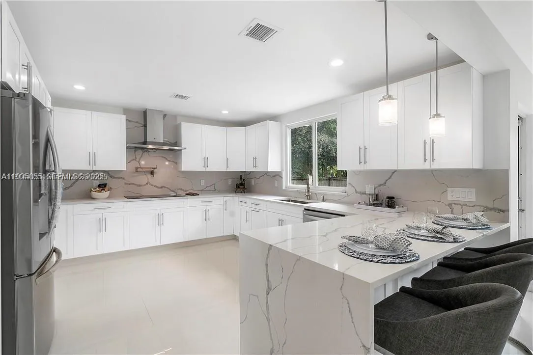 NEWLY REDUCED! Rarely Available Opportunity to own a Fully Renovated 3,300 sq ft home with 5 rooms and 3 full bathrooms on a Massive One Acre lot! This Ultra Modern Residence has been Updated Entirely with all Custom finishes from large white porcelain flooring, to all brand new appliances, newly remodeled Kitchen with Gorgeous Contemporary Waterfall Countertops, Brand New Bathrooms, Hurricane Impact Glass throughout, New Cabinetry, New Lighting, A/C units from 2021, New Tankless Water Heater, PVC pipes, and the list goes on! Exterior of home has been painted and the pool has been entirely refinished with marble pavers on deck! Both Wood Entry Fences are also new. Acre lot has been cleared of large trees. 9 freshly planted fruit trees in the back of the lot. Residence is move in ready.