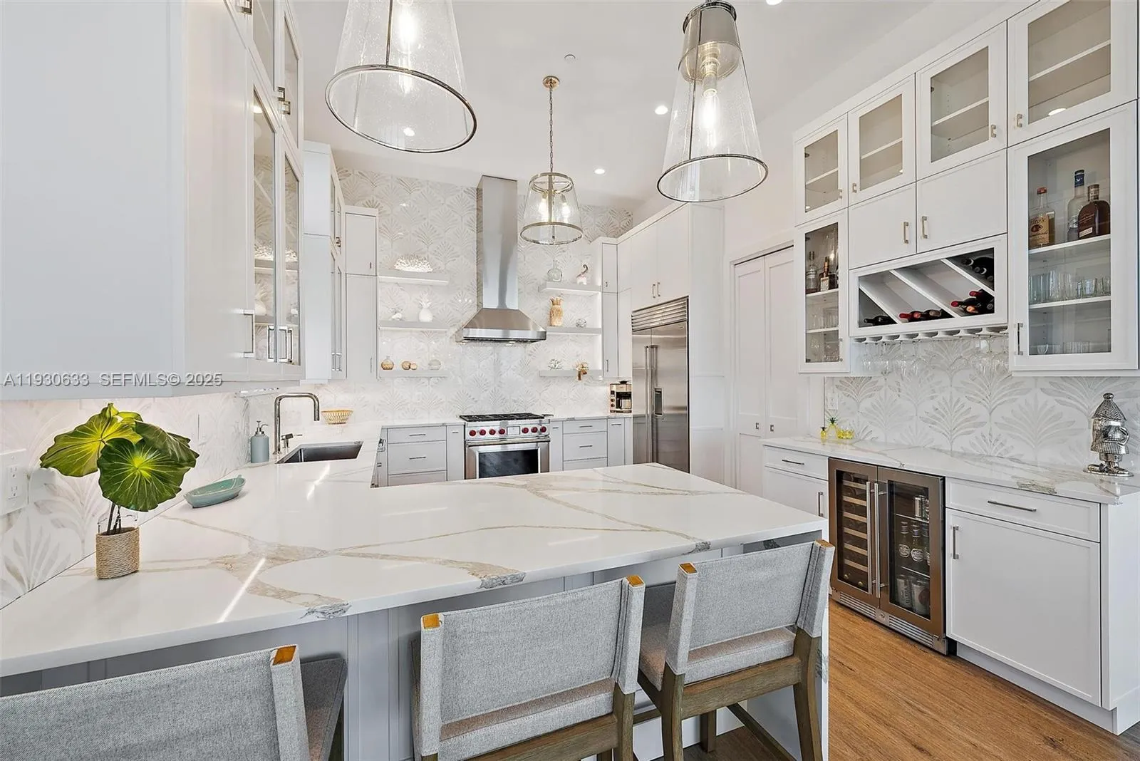 BRAND NEW! Immerse yourself in the beauty of your surroundings with this new construction, direct oceanfront 3/possible 4 bedroom, 4 bathroom home with elevator. Professionally designed and decorated with high-end finishes, custom wood-working, and extraordinary light fixtures throughout. High ceilings with over-sized windows and sliding doors allow for a plethora of natural lighting. Kitchen is equipped with Wolf gas range, Sub-Zero refrigerator, wine cooler, and walk-in pantry. “Smart Home” features include lighting control, climate control, distributed audio system, intercom system, surveillance system, and Enterprise Grade network and WIFI. Solid concrete, impact windows and doors, air-conditioned 2-car garage, completely fenced yard. Close to numerous airports and marinas.