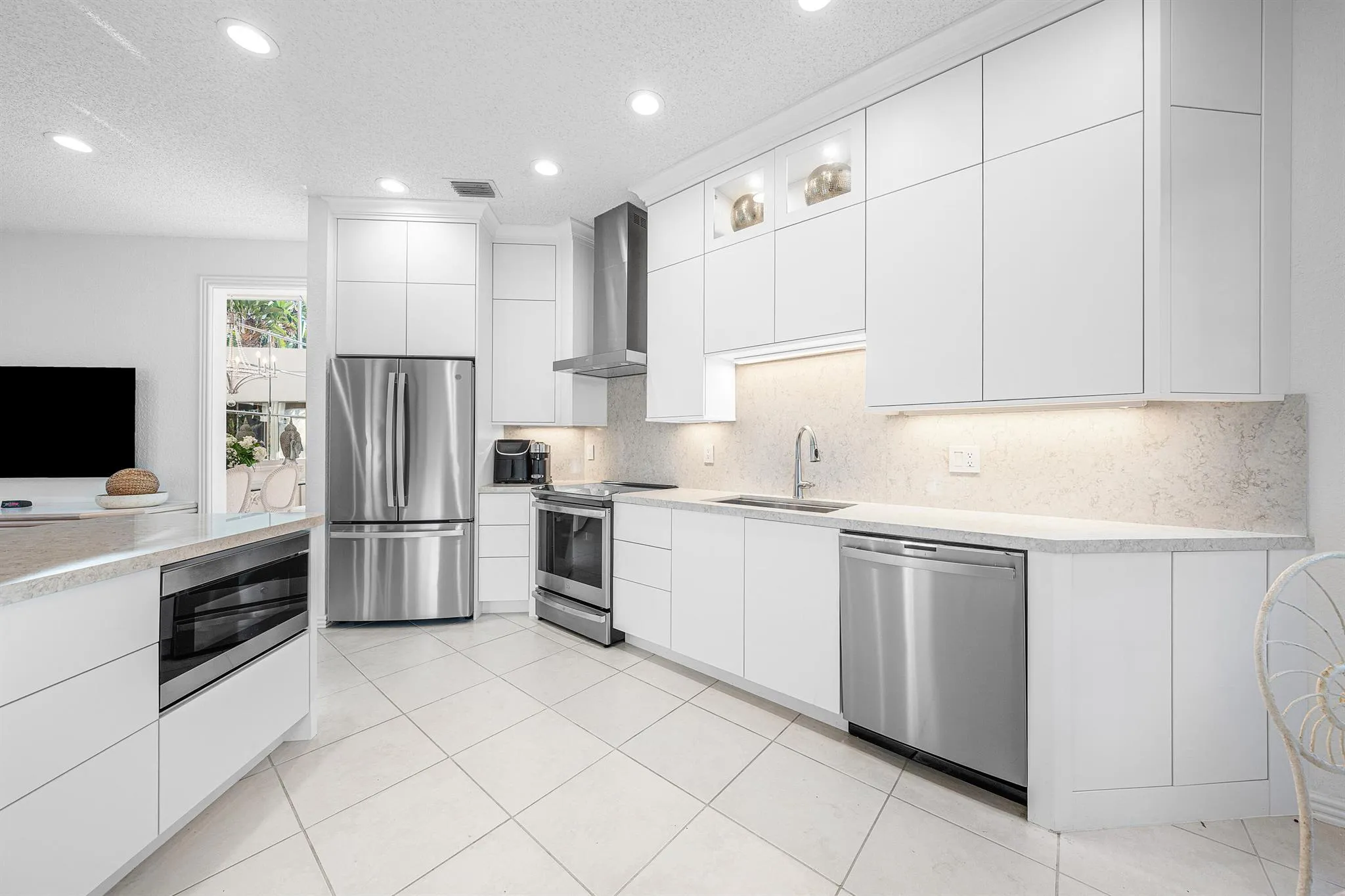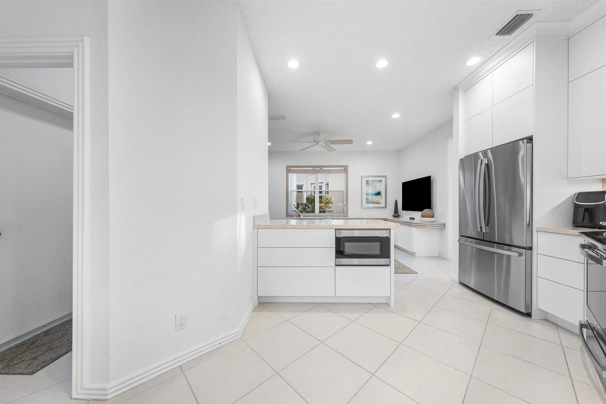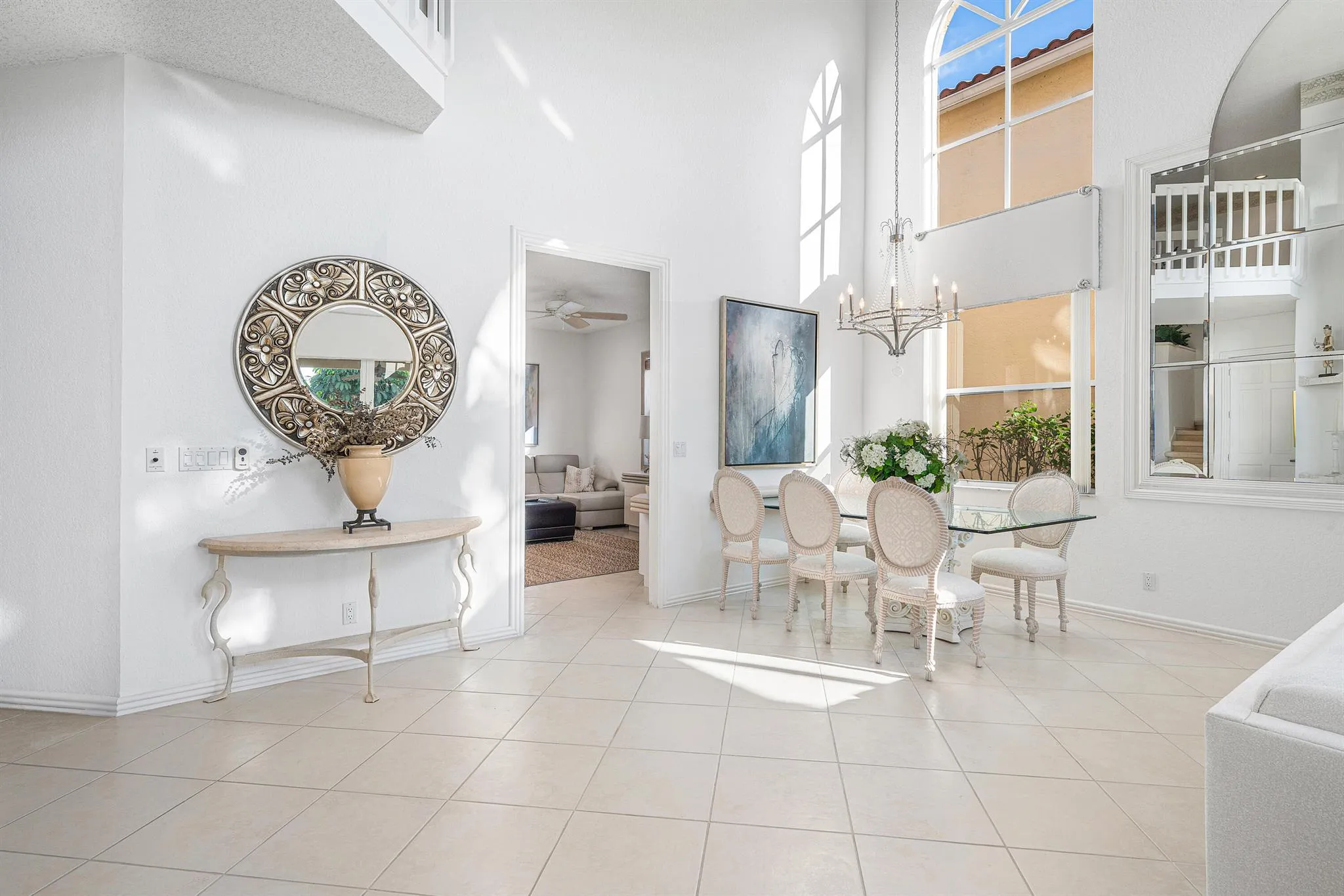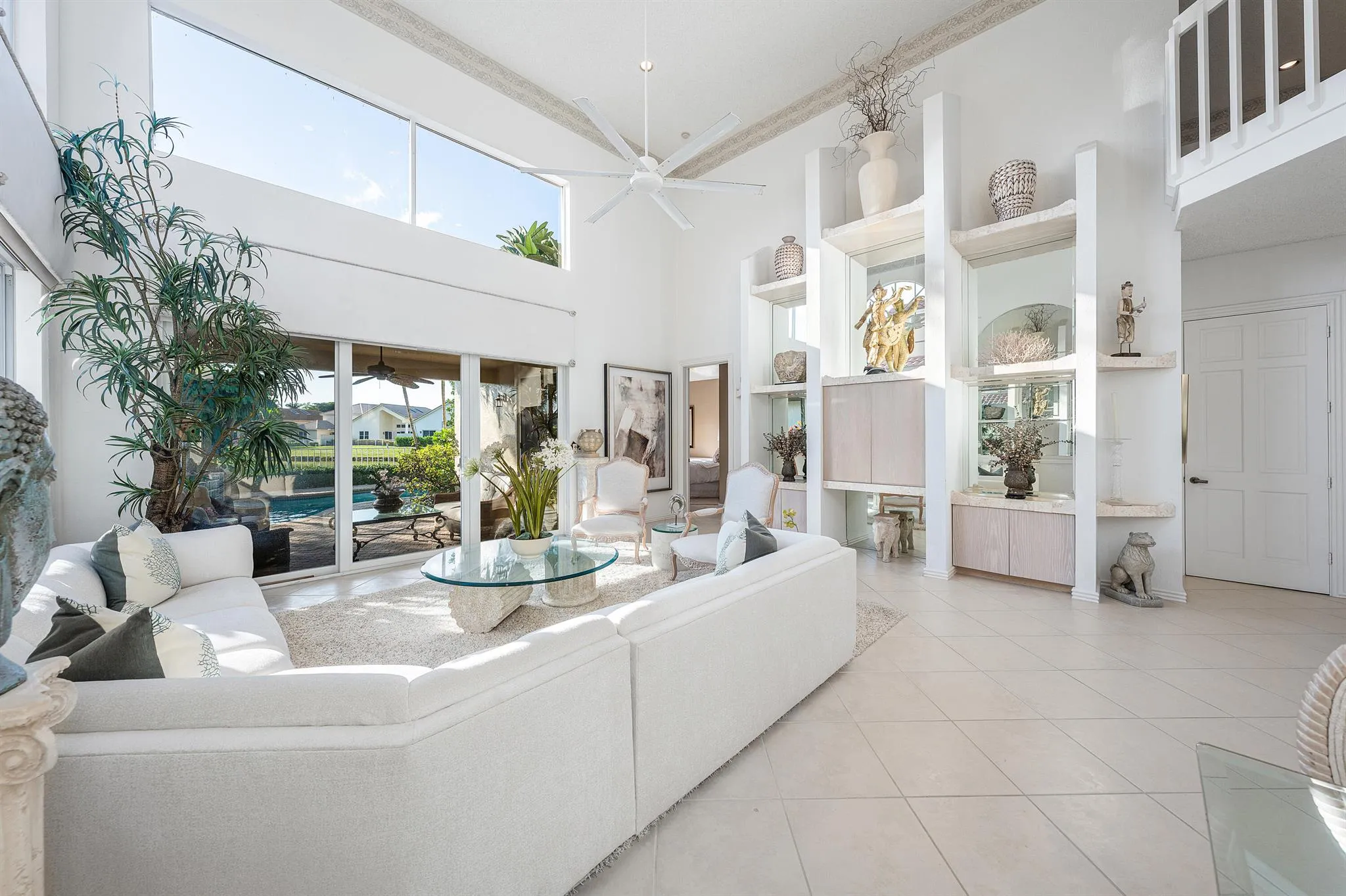 Step inside a home that blends openness and natural light, with the option to shape it to your own preferences. The main living area features impressive volume ceilings and a comfortable flow. Leading through impact sliding doors, a covered patio, and a private pool with a spillover spa, provides a tranquil setting. The peaceful lake views act as a calm backdrop, with gorgeous sunset views. The kitchen brings a refreshed, modern tone with updated finishes and new appliances, connecting seamlessly to the relaxed family room, which serves as an additional space to gather. The two-story design is thoughtfully arranged, placing the primary suite on the main level for day-to-day ease, while the two guest suites upstairs offer privacy and space for visitors. The home also features a convenient