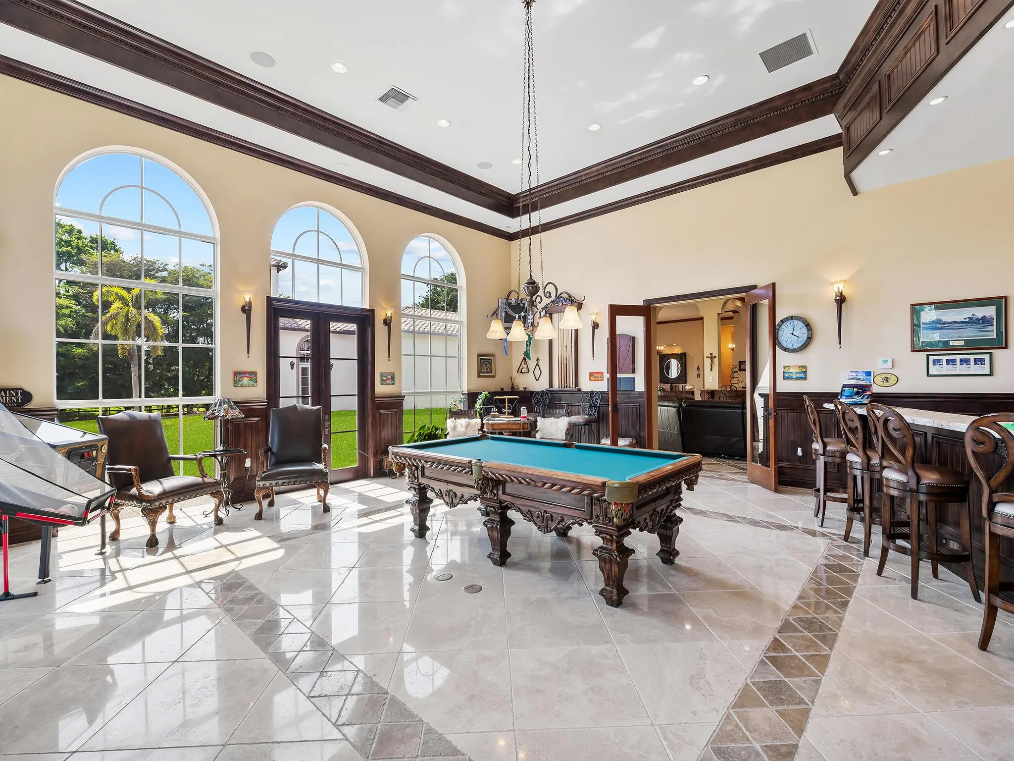 Palatial gated estate on 3 private acres of prime fenced property situated in the highly sought after BBB Ranches of Parkland, with 6′ perimeter fence and electric gate. On one of the best streets in the Ranches with City Water. This elegant 2-story estate features over 10,000 sq feet of total living space, with unparalleled craftsmanship and architectural details. Impressive 6-bedroom suites, plus library, plus enormous game room and loft area. This one-of-a-kind custom estate is meticulously maintained and offers, Custom painted ceilings, 2 custom bar areas, built-ins thru-out, 2 laundry rooms, butler’s pantry, stone floors in formal areas. Huge state of the art kitchen outfitted with premium appliances, center island, 2 dishwashers, 2 walk-in pantries.