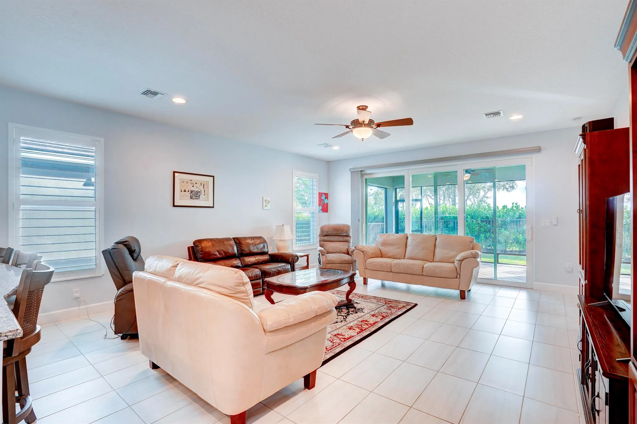 Welcome to 13388 SW River Rock in Valencia Grove at Riverland–a premier 55+ community in the heart of Tradition, just minutes from its popular restaurants, shops, and local events. Perfectly positioned backing to the Paseo/bike path, this home offers serene views and easy access for morning walks or bike rides.This thoughtfully designed home features 3 bedrooms plus a den/office (ideal as a guest room), 2.5 bathrooms, and a 2-car garage. Enjoy true indoor-outdoor living from the large screened-in patio, while plantation shutters add timeless style and privacy. The kitchen is perfect for everyday living and entertaining with a gas range, granite countertops, and 42-inch cabinets featuring pots-and-pan drawers and adjustable shelving for smart storage and organization.