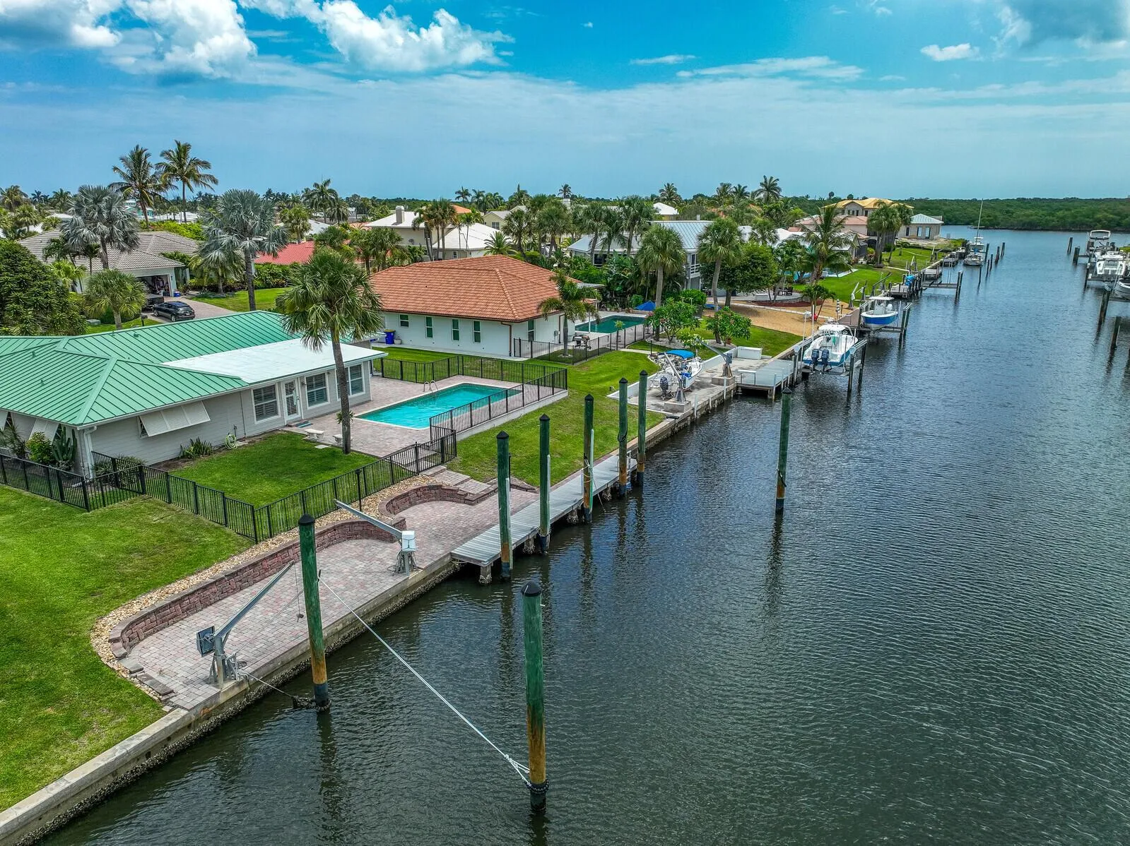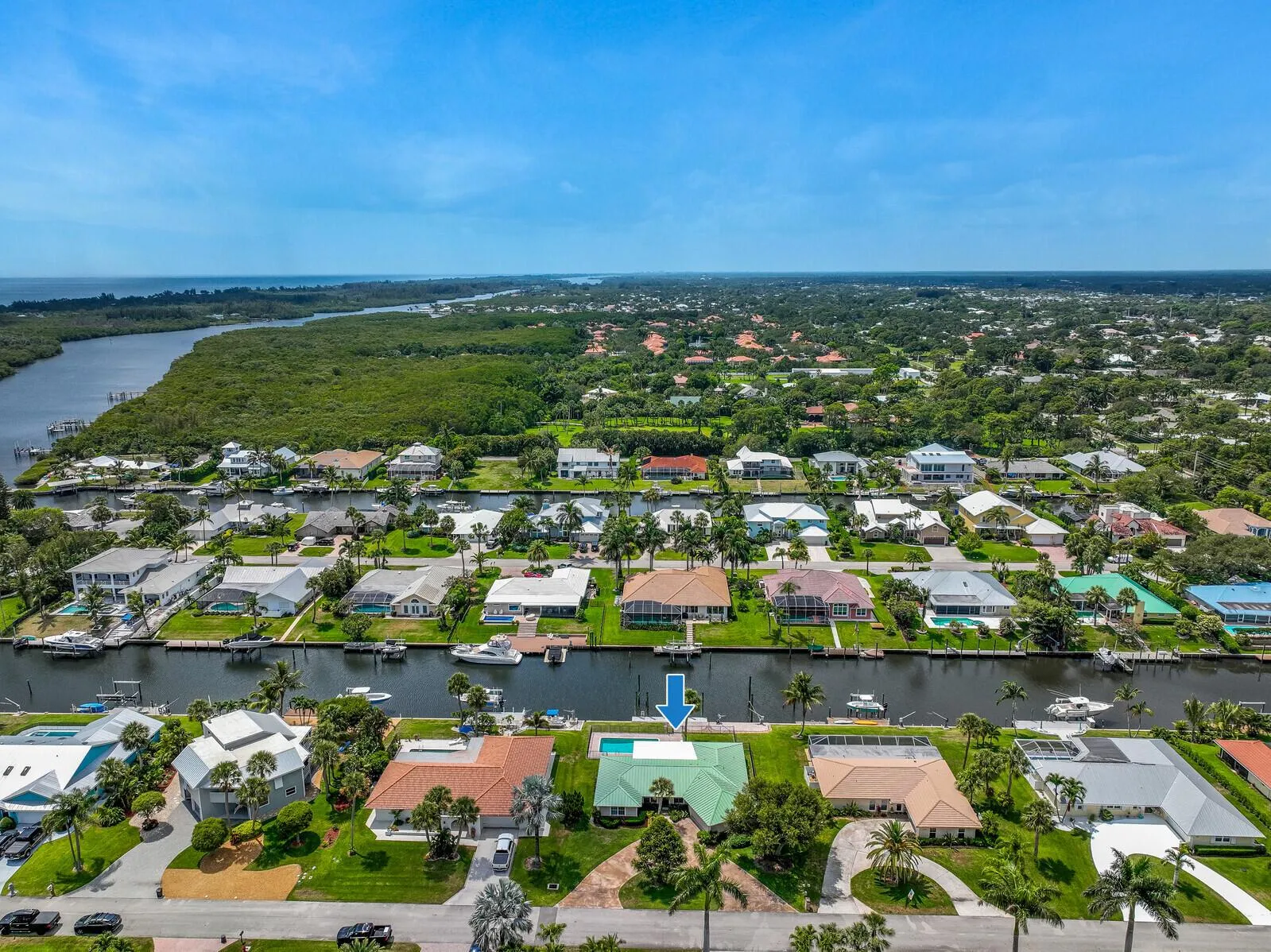Incredible opportunity to live the Florida waterfront lifestyle! Home for your Yacht – 100 ft of waterfront paradise on deep water 100′ wide canal, 6 homes from the Intracoastal Waterway. The perfect place to moor your boat and enjoy ”bridgeless” access to ocean. Remarkable features that make this property a true gem: Concrete seawall + 40 foot dock w xtra large/high pilings to moor up to 60ft boat. +21 ft slip in area of the davits for jet skis or 14ft boat. Solid CBS construction, impact doors/window, hickory floors, big master w walk-in closet his/hers vanities, central vacuum, lots of living space, plantation shutters, built-in book cases, extra large 2 car garage. Experience thrilling water sports adventures from your backyard. The Pine School (pre K – 12)