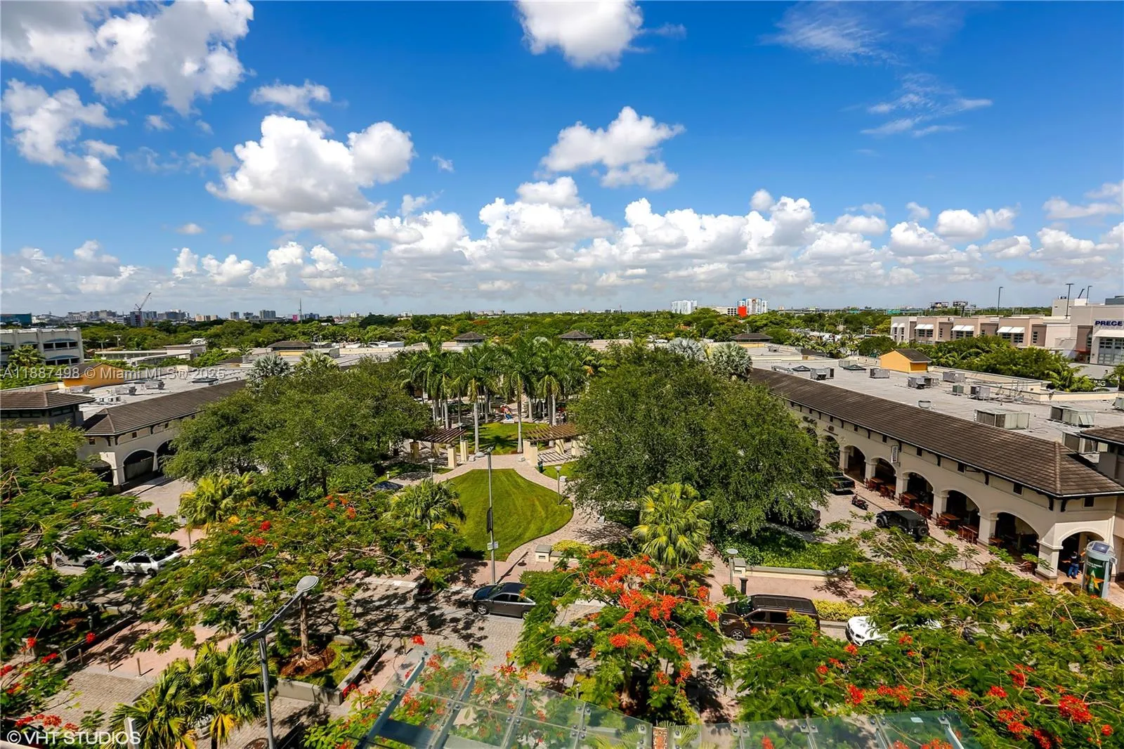 Boutique mid-sized building in the heart of Mid-Town! This 2 story Gem is 1,572 SF and has a large balcony facing west over the tree lined promenade plus 2 smaller balconies upstairs. Bright spacious living area downstairs with open kitchen layout plus half bathroom with extra closet space. Both bedrooms and 2 bathrooms are upstairs with large closets and washer /dryer closet. Master bedroom has the master bathroom in suite and a private balcony. Expansive balcony across kitchen and runs along living room area. Additional balcony upstairs by laundry closet. Building has 24hr security, pool and gym. 1 parking space assigned. Be in the middle of it all, restaurants, shops and much more. Great location and has amazing walkability