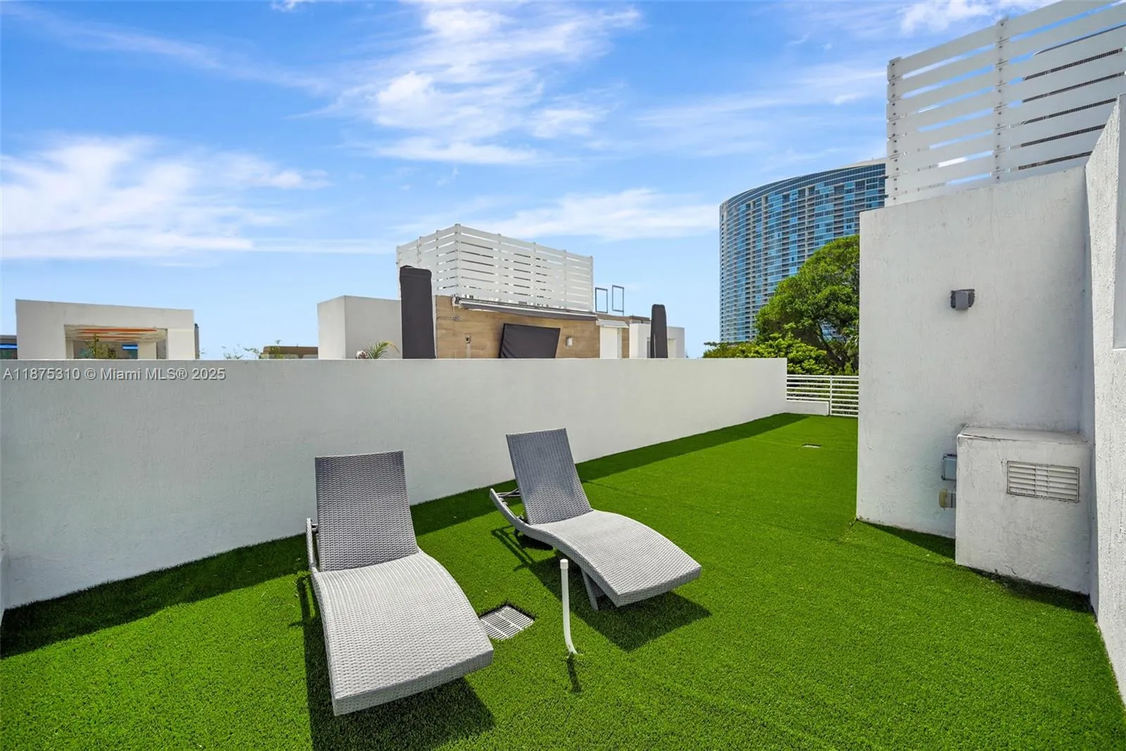Experience modern living in this stunning 2-bedroom plus den, 2-bath townhouse within a gated community across from Miami’s renowned Design District. Soaring double-height ceilings and sleek design create an airy, open feel, ideal for relaxing or entertaining. A 692 sq. ft. rooftop terrace with full plumbing and turf is perfect for sun, gatherings, or skyline views, while a 193 sq. ft. terrace offers a tranquil spot for coffee or dining. Added convenience includes a 264 sq. ft. garage plus an assigned parking space steps from your door. With the Design District, Midtown, and Wynwood just minutes away, you’ll enjoy Miami’s best shopping, dining, and cultural hotspots—making this townhouse the ultimate urban oasis. Also available for lease.
