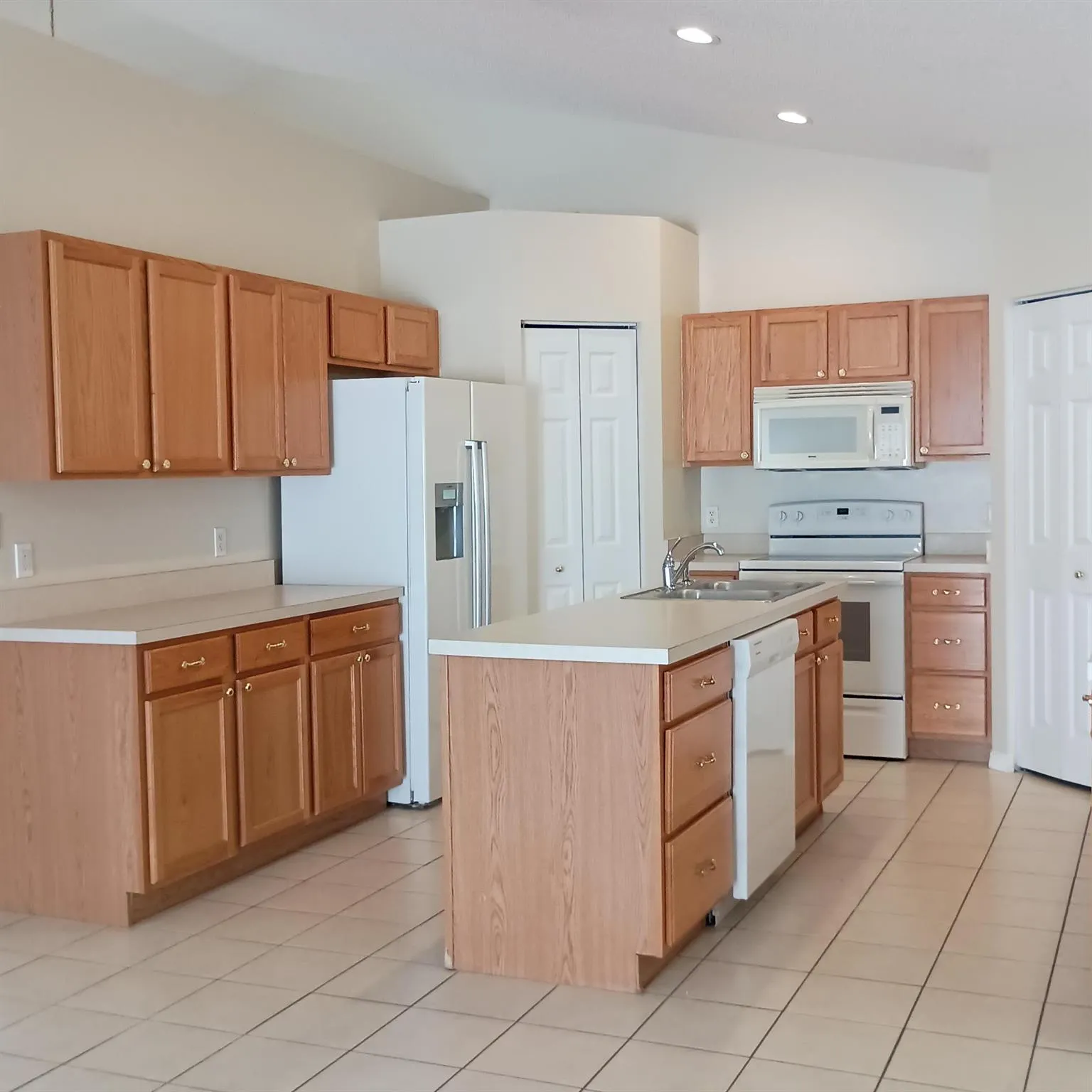 A spacious 4-dedroom with, 2-bath home features a split floor plan, with vaulted ceilings, and built in shelving. The tall ceilings have lots of recessed lighting. The home has spacious living room and family room, great for entertaining and or kids playing. A large kitchen with lots of cabinets that has an island and pass-through window to the screened patio, perfect for outdoor dining or BBQ’s. home has Tile and laminate flooring cover main living areas, with carpet in all bedrooms and an inside laundry room for convenience. The master suite includes a Roman tub, separate shower, and cabana door to the patio with a large yard.