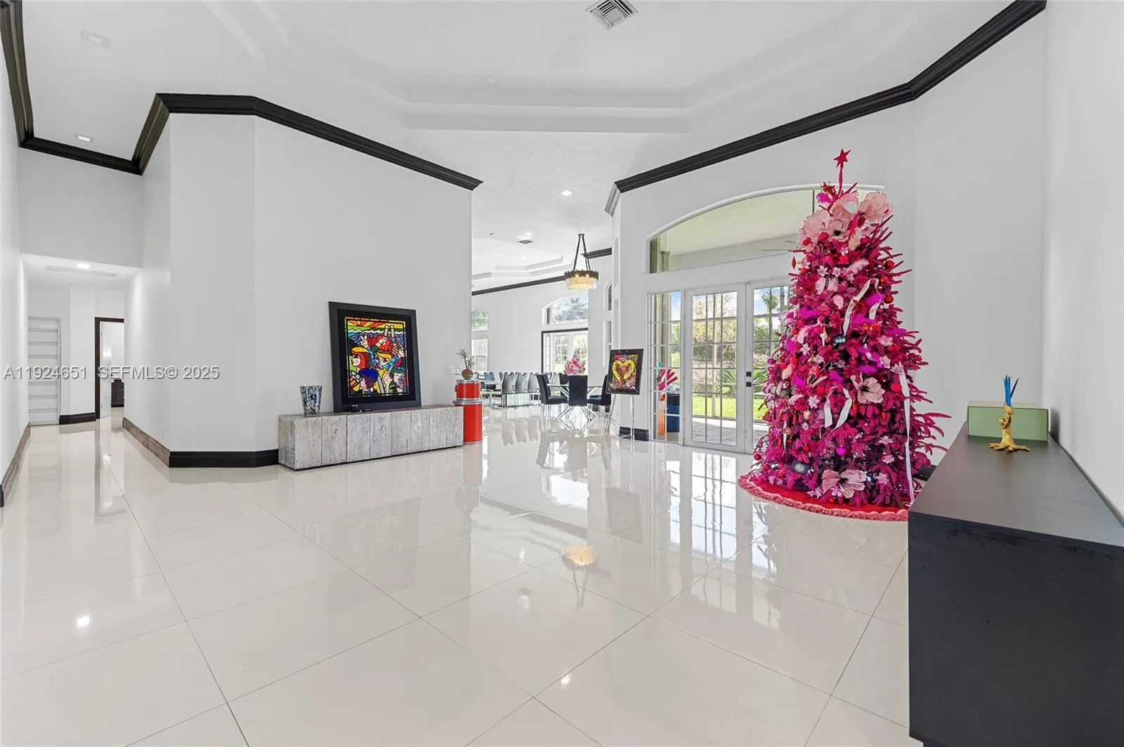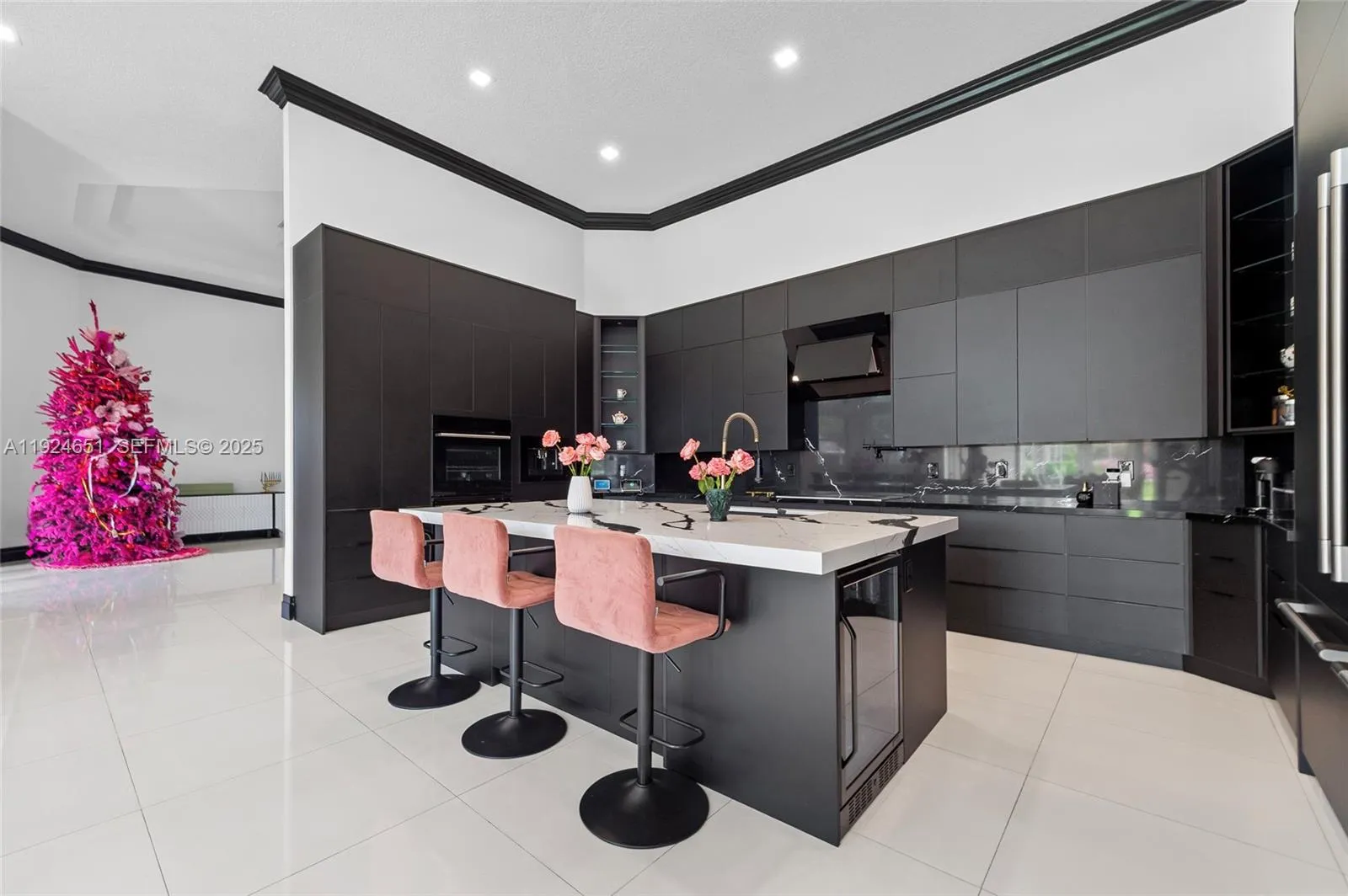 Set within the gated enclave of Emerald Springs Estates, this modern elegance is on the community’s largest lot with 1.5 acres of beautifully designed grounds, complete with a private sports court and resort-style outdoor living. Fully remodeled in 2021, the home offers 4 bedrooms and 4 bathrooms, each updated with new showers, designer fixtures, custom closets, and sleek white porcelain flooring that carries throughout the residence. The primary suite is a true retreat, with an oversized room highlighted by a Chanel-influenced walk-in closet with luxury designer flooring. The kitchen is equally impressive, reimagined with top-tier finishes and a complete collection of Fulgor Milano Italian appliances, including two refrigerators, a wine fridge, double oven, drawer microwave, built-in espresso machine, an island beverage fridge, and a Bosch dishwasher. Three A/C units, a new water heater, new washer and dryer, and accordion shutters offer comfort and peace of mind. The pool and spa were fully renovated in 2021. Expansive outdoor space and room to personalize with an outdoor kitchen or additional amenities, this rare Davie estate blends luxury, privacy, and scale in a way few homes can match.