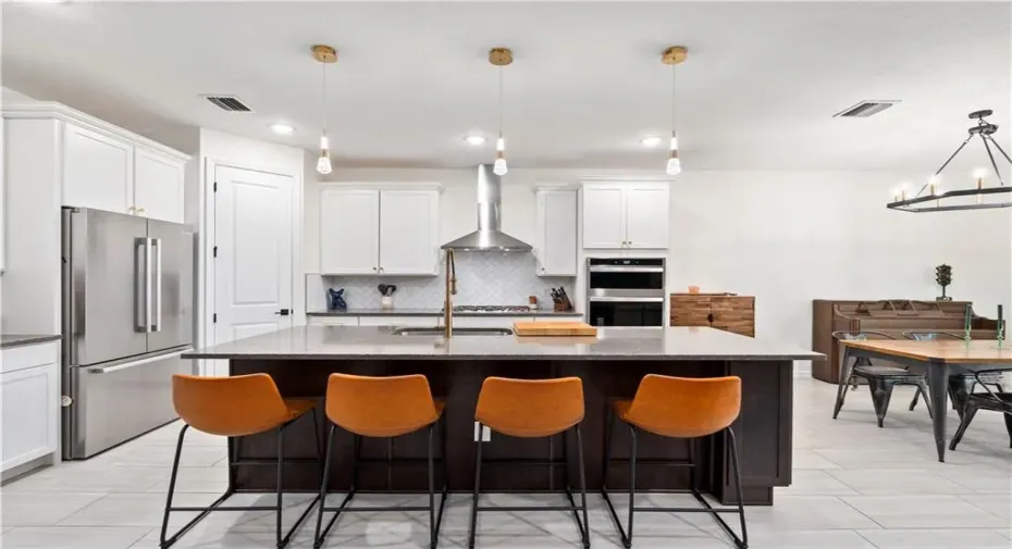This 2023 modern 5-bedroom stunner features stylish finishes, tray ceilings, built-ins, accent walls, & sleek tile plank flooring. The gourmet island kitchen is serious business boasting a Wolf gas cooktop, Bosch refrigerator, Quartz counters, & custom butler’s pantry. Retreat to a luxe primary suite w/dual vanities, soaking tub & massive walk-in closet. Even the garage is upgraded w/epoxy floors, EV charger, & slat wall storage. Includes impact windows, water filtration, & screened lanai, & yard w/room for a pool. you’re a quick golf cart ride to Publix, dining, and the Tradition Trail.