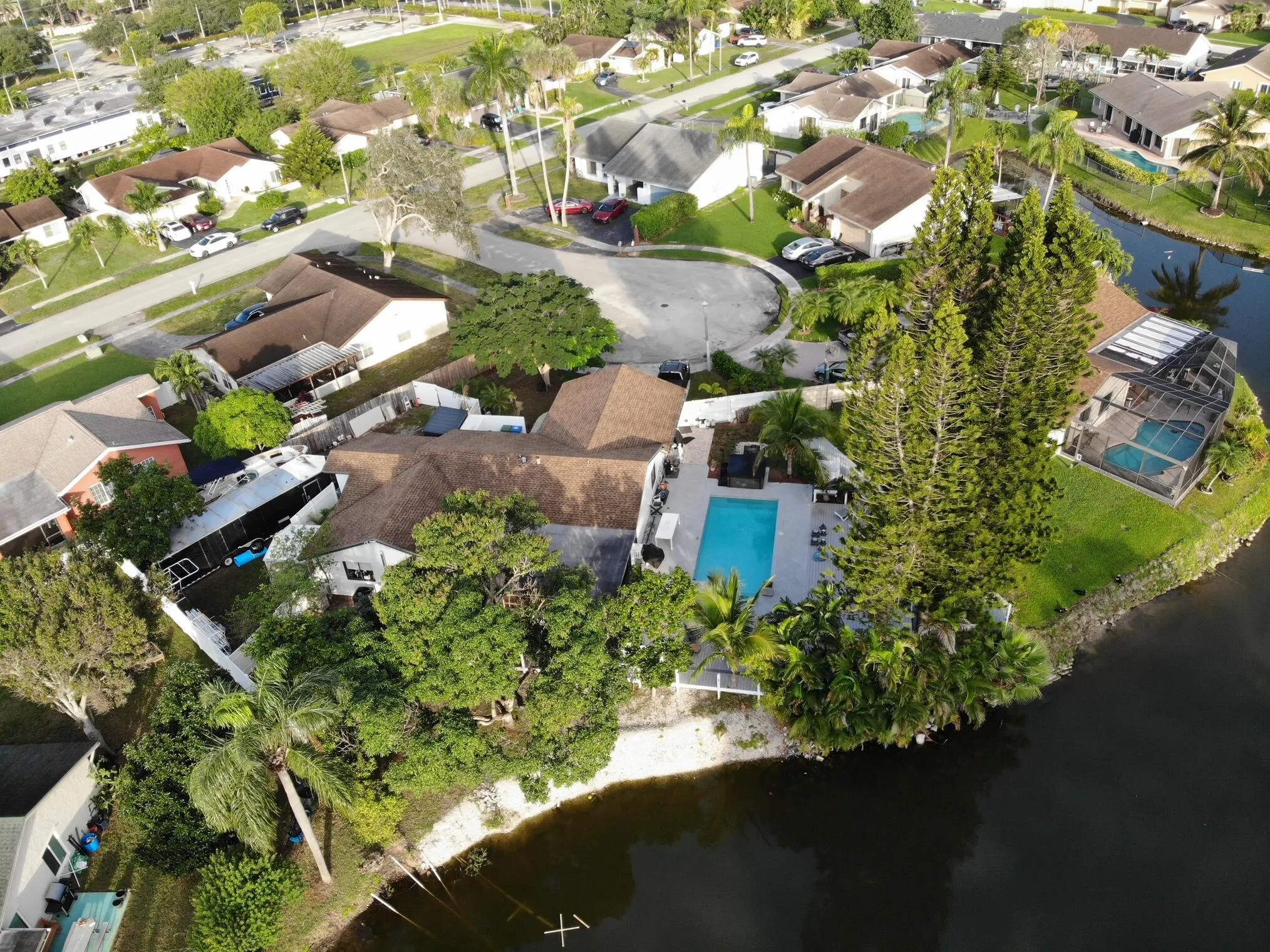 INVESTORS ALERT! Exceptional waterfront property with outstanding rental and income potential. Numerous updates and remodels throughout. Features a private in-law/studio with its own entrance, plus an oversized primary bedroom that can easily be converted into an additional studio. Enjoy an oversized Florida room with tranquil lake views, a brand-new large Trex deck, and a spa. The expansive lot offers double fence doors for easy storage, accommodates up to 5 cars, a 30-ft trailer, and two 34-ft boats. Outdoor highlights include two large sheds, a fire pit, two avocado trees, and a mature mango tree producing fruit annually. The kitchen boasts an oversized pantry, and the primary bath is ready to be remodeled to your taste. Endless possibilities for investors or multi-generational living.