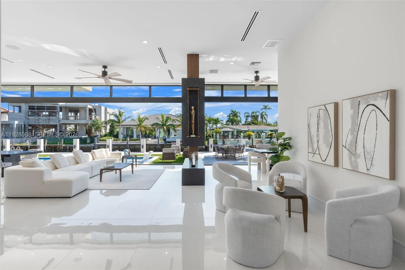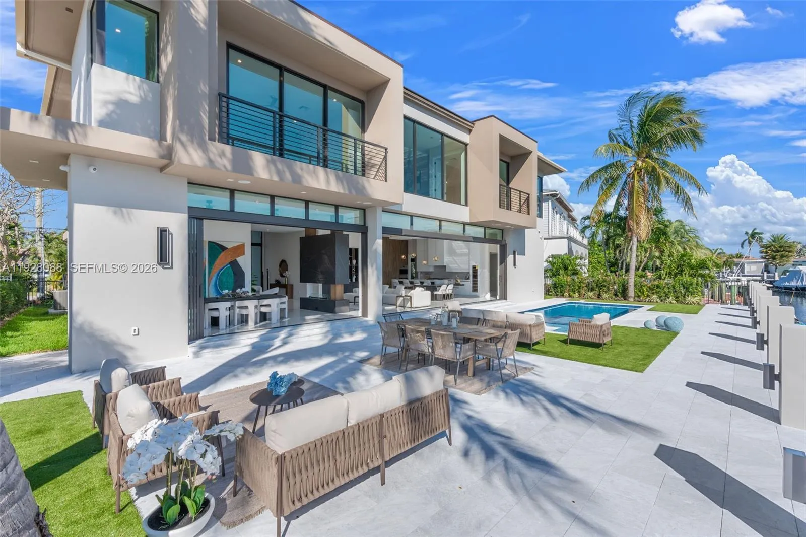 Introducing a spectacular 2026 modern waterfront estate in the heart of Lighthouse Point, offering exceptional design, premium finishes, and true resort-style living. This 5-bedroom, 6-bath residence spans 5,055 sq ft (5,961 total) and sits on 90 feet of deepwater frontage with direct ocean access—ideal for luxury coastal living. rnStep inside to soaring 12-foot ceilings, open living areas, and a sleek contemporary layout filled with natural light. Impact glass pocket doors disappear, creating a dramatic indoor–outdoor flow to the waterfront terrace. The chef’s kitchen is a showpiece, featuring Sub-Zero and Wolf appliances, custom cabinetry, and an exquisite sculptural island that anchors the home’s sophisticated entertaining spaces.rnA curated blend of imported Italian and Spanish designer finishes add modern grandeur throughout. rnThe primary suite is a private sanctuary with water views, a spa-inspired bath, and boutique-style closets. Guest suites are spacious and elegantly appointed. A private elevator, smart-home integration, and impeccable 2026 construction ensure seamless, elevated living.rnOutside, enjoy a resort-style pool, covered terraces, and a private dock ready for a large vessel. This brand-new residence blends a rare fusion of bold architecture, cutting-edge design, luxury detail, with the best of South Florida waterfront living—an exceptional opportunity in one of Lighthouse Point’s most coveted neighbourhoods.