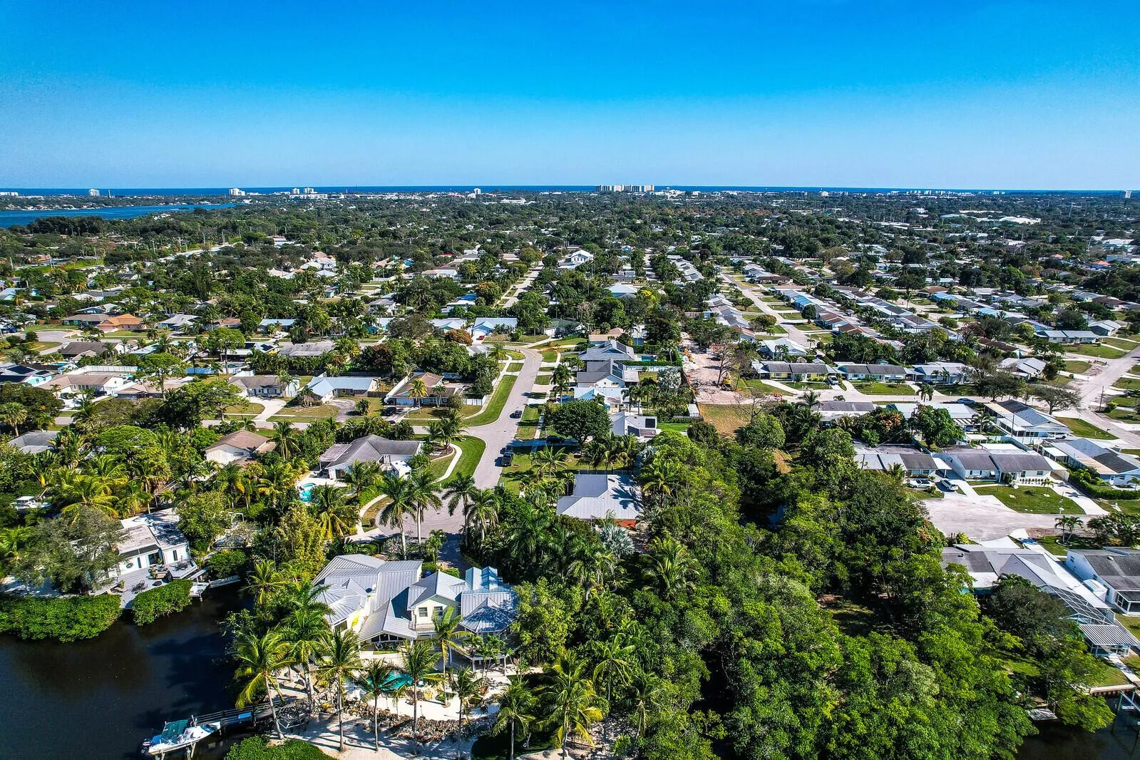 Tropical oasis with nearly 1/ 2 an acre on a cul-de-sac and no HOA in the heart of Jupiter! Bring your boat, kayaks, and paddleboards for waterfront access with a dock on Jones Creek that offers ocean access to the Jupiter Inlet! Mature exotic palms, lush mangroves, and diverse array of plants surround the outdoor area creating a peaceful resort style feel. Inside the home offers an updated kitchen with custom cabinets and granite countertops that open to a large area that’s great for entertaining. Three stacked bedrooms and 2 1/2 nicely updated bathrooms complete the interior. Additional highlights include an oversized 2-car garage, metal roof, a large outdoor deck, and full hurricane protection with partial impact glass. A truly unique property offering the ultimate Florida lifestyle!