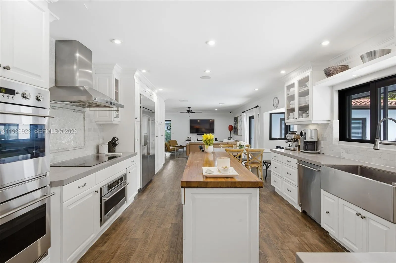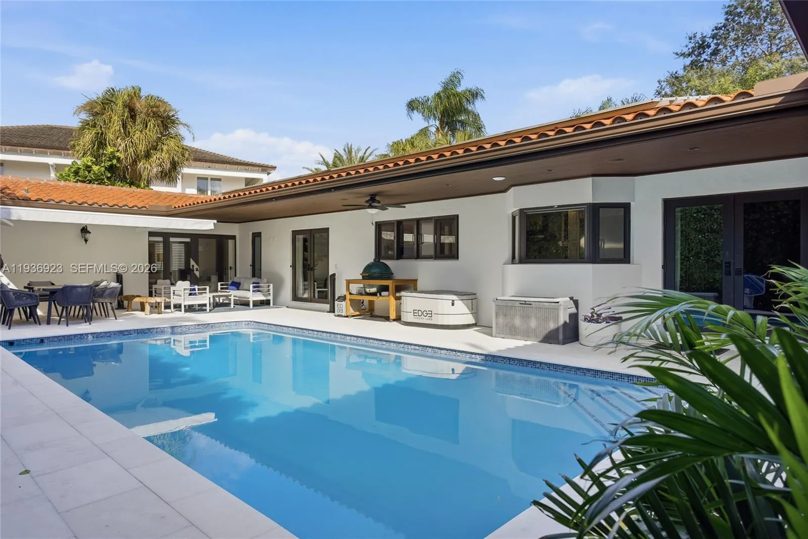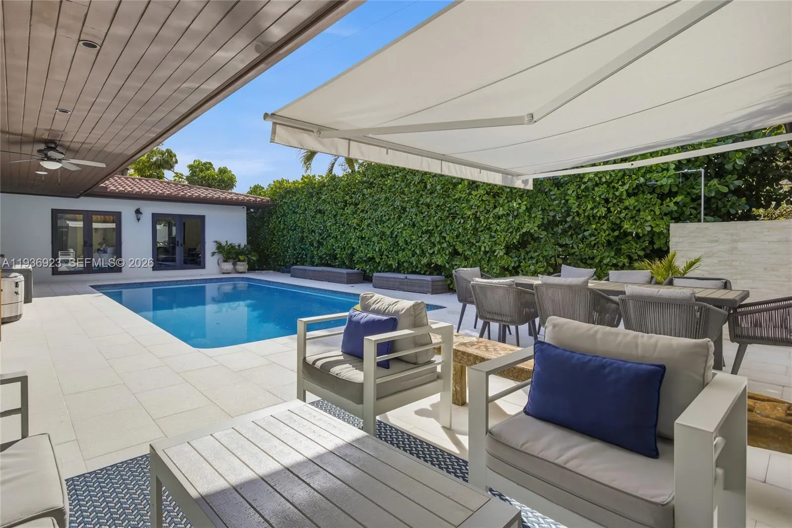 Nestled at the end of a quiet cul-de-sac in the exclusive gated community of Gables by the Sea, this 6-bedroom, 3.5-bath residence offers exceptional privacy, space, and refined living. A charming courtyard entry framed by lush landscaping welcomes you into bright, open interiors featuring impact-resistant windows and elegant wood-look tile flooring throughout.rnrnThe chef’s kitchen serves as the focal point of the home, showcasing a butcher-block island, custom cabinetry, and serene pool views, ideal for both everyday living and entertaining. The primary suite and three additional bedrooms are positioned on one wing of the home, while a private two-bedroom, one-bath suite on the opposite side provides flexible living options for guests, in-laws, a home office, or multigenerational use.rnrnEnjoy year-round outdoor living with a heated saltwater pool, perfect for relaxing or hosting gatherings. Solar panels add efficiency and long-term savings. Residents of Gables by the Sea enjoy access to a neighborhood park and proximity to top-rated schools including Gulliver Prep and Pinecrest Elementary.rnrnA rare opportunity to own a spacious, move-in-ready residence offering luxury, versatility, and an exceptional lifestyle in one of Pinecrest’s most desirable gated communities.
