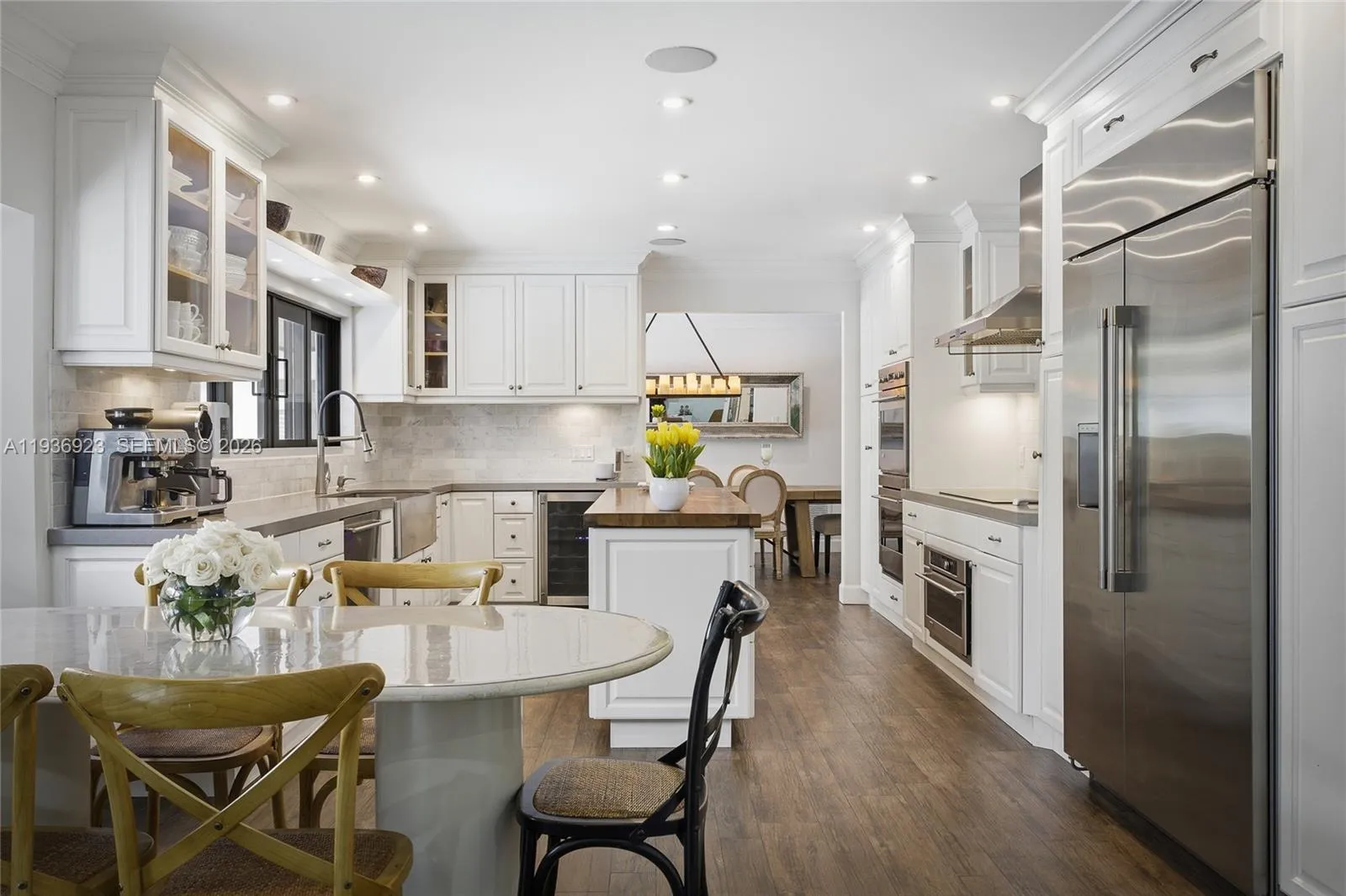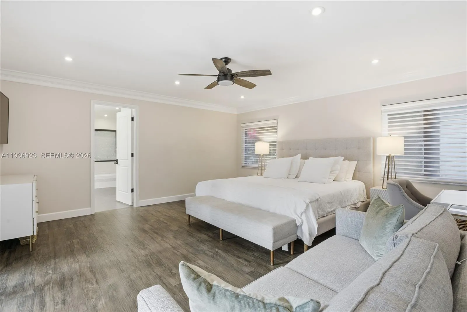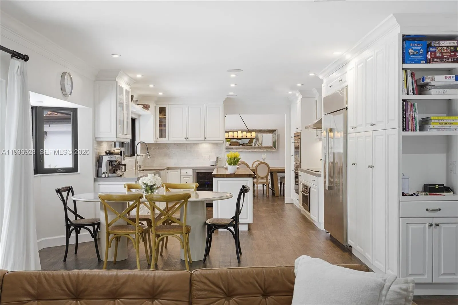 Nestled at the end of a quiet cul-de-sac in the exclusive gated community of Gables by the Sea, this 6-bedroom, 3.5-bath residence offers exceptional privacy, space, and refined living. A charming courtyard entry framed by lush landscaping welcomes you into bright, open interiors featuring impact-resistant windows and elegant wood-look tile flooring throughout.rnrnThe chef’s kitchen serves as the focal point of the home, showcasing a butcher-block island, custom cabinetry, and serene pool views, ideal for both everyday living and entertaining. The primary suite and three additional bedrooms are positioned on one wing of the home, while a private two-bedroom, one-bath suite on the opposite side provides flexible living options for guests, in-laws, a home office, or multigenerational use.rnrnEnjoy year-round outdoor living with a heated saltwater pool, perfect for relaxing or hosting gatherings. Solar panels add efficiency and long-term savings. Residents of Gables by the Sea enjoy access to a neighborhood park and proximity to top-rated schools including Gulliver Prep and Pinecrest Elementary.rnrnA rare opportunity to own a spacious, move-in-ready residence offering luxury, versatility, and an exceptional lifestyle in one of Pinecrest’s most desirable gated communities.