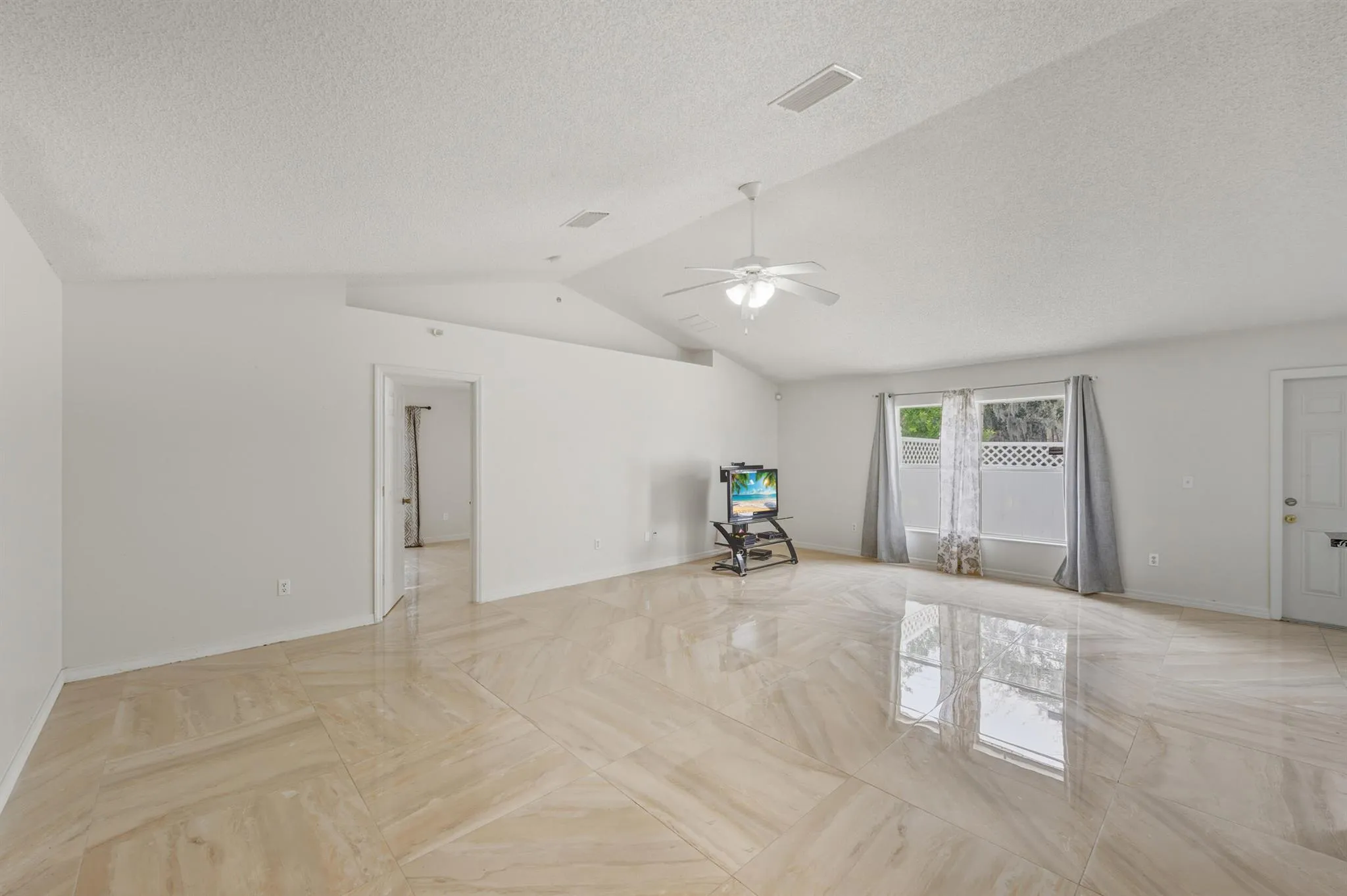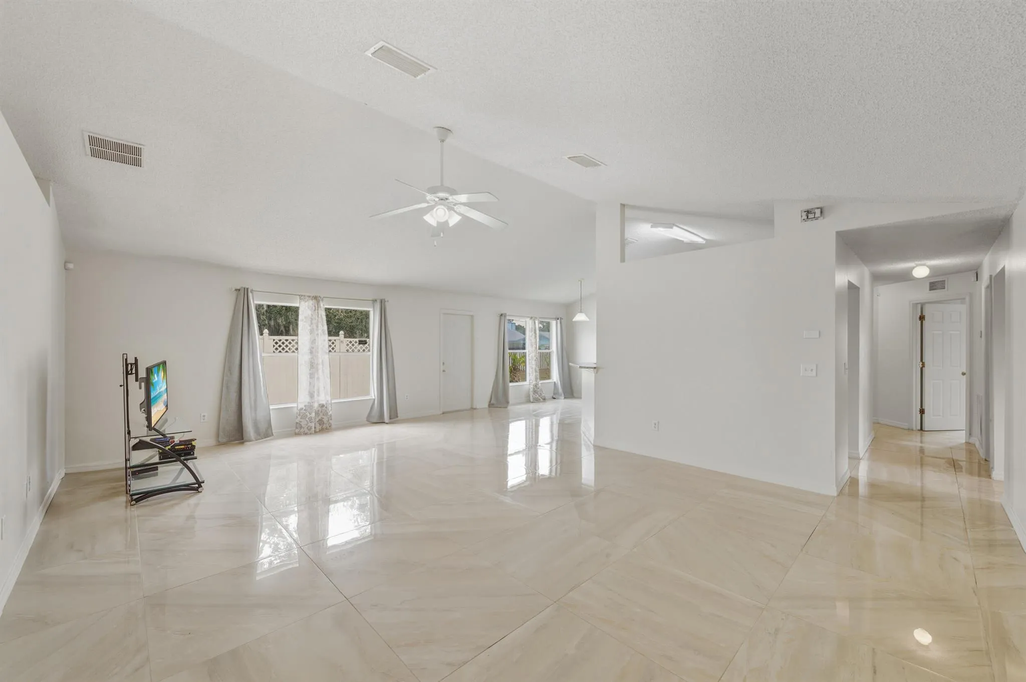 Renovated corner-lot home in Lakewood Park featuring fresh interior paint and new marble flooring throughout. The eat-in kitchen offers new appliances and opens to a spacious living room and formal dining area. The fourth bedroom has been converted into a den/office, providing flexible use of space. The primary bedroom includes a newly installed spa tub, dual sinks, and his-and-hers closets. Additional features include a two-car garage, hurricane shutters, and camera surveillance. Conveniently located near parks, shopping, Vero Beach Regional Airport, Lakewood Park Elementary school & Library. Schedule a showing today and make this home yours!