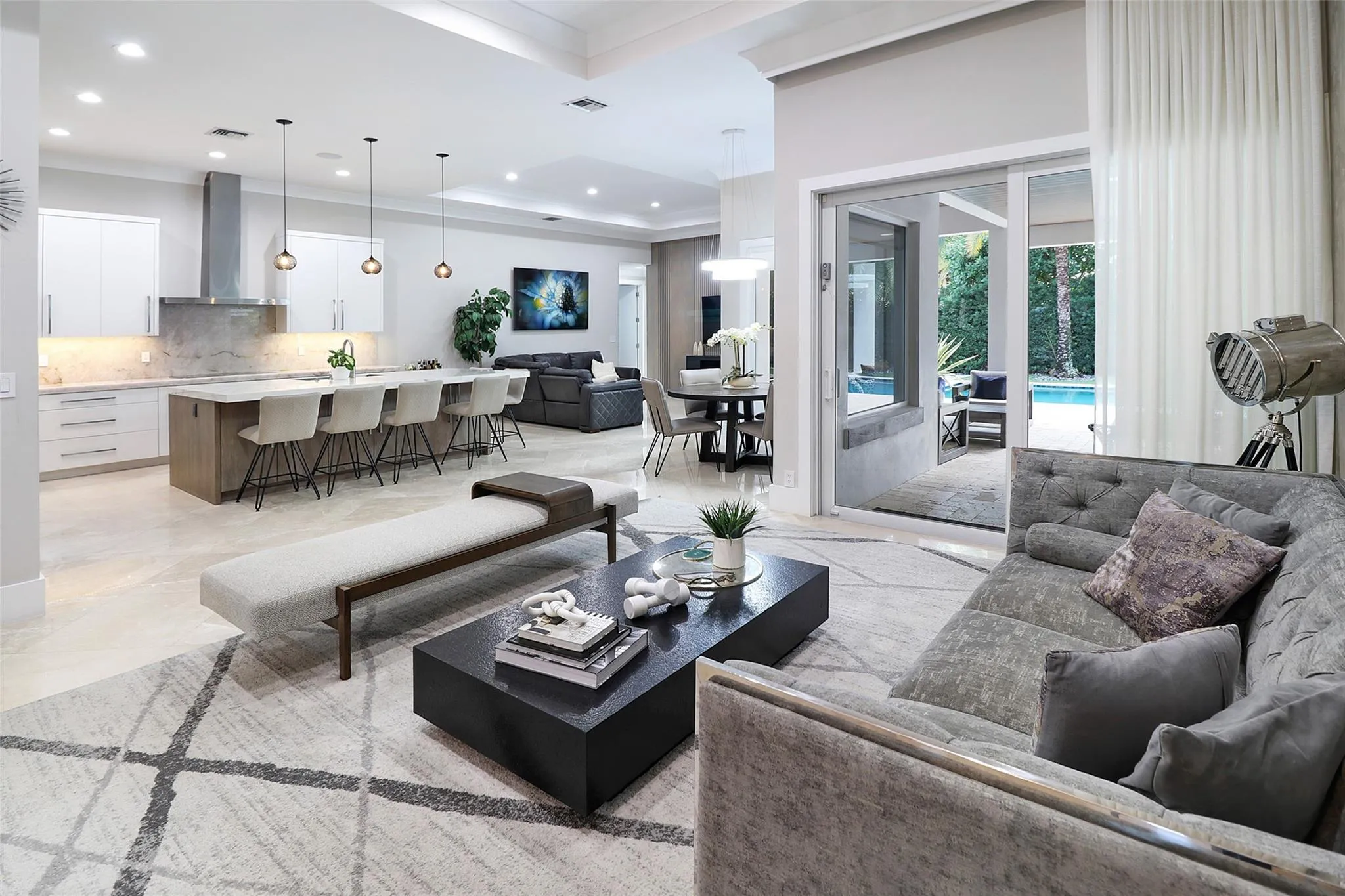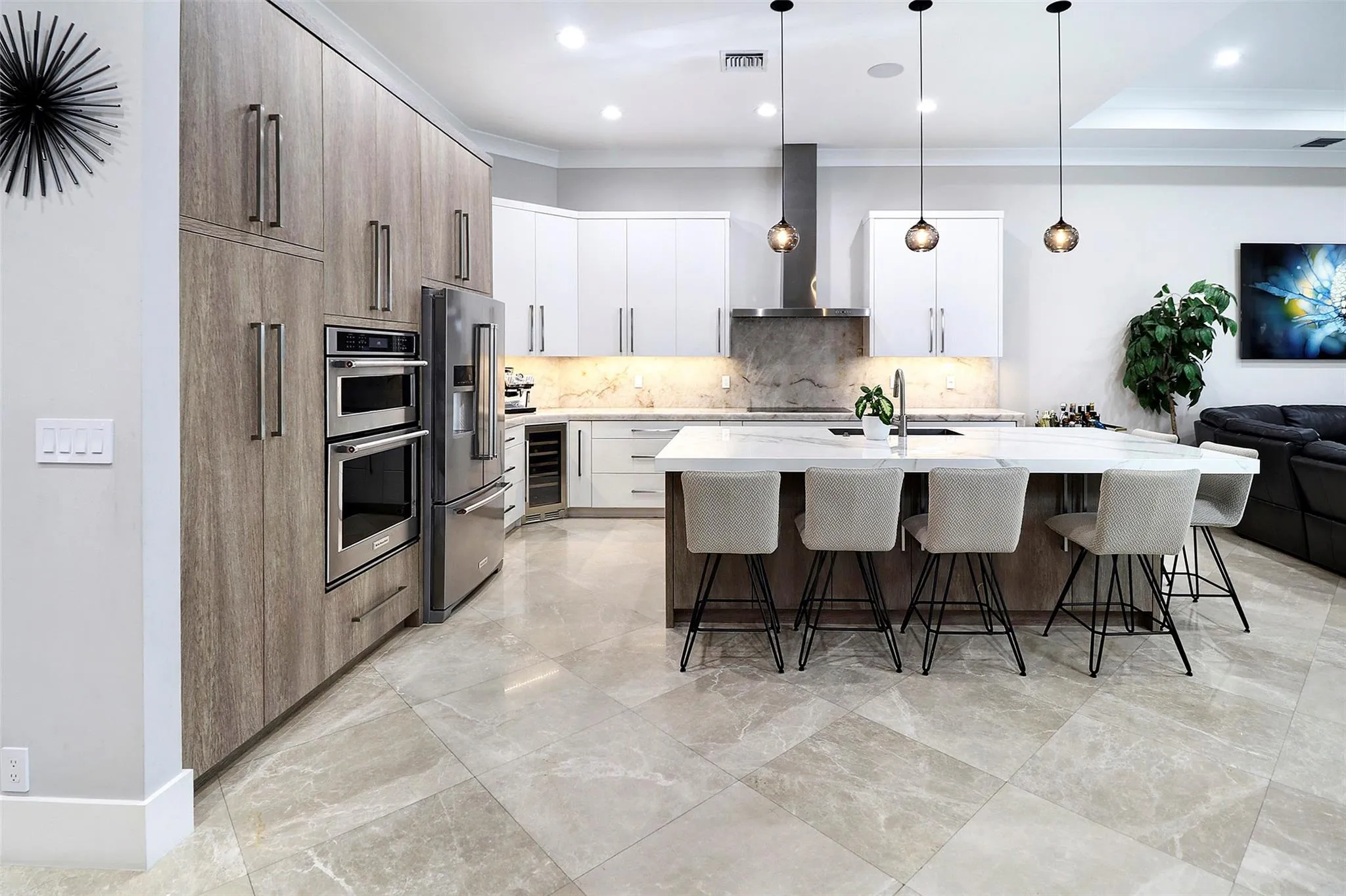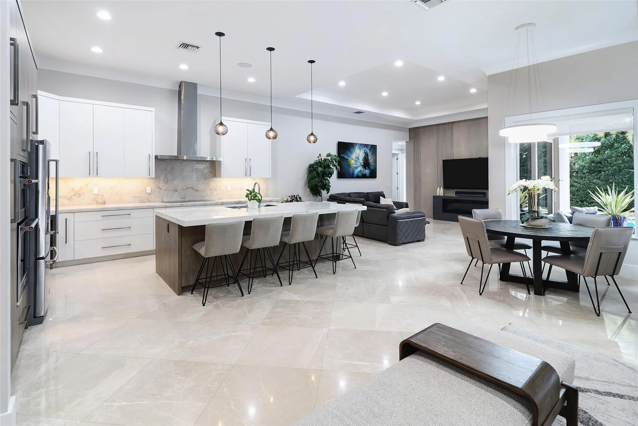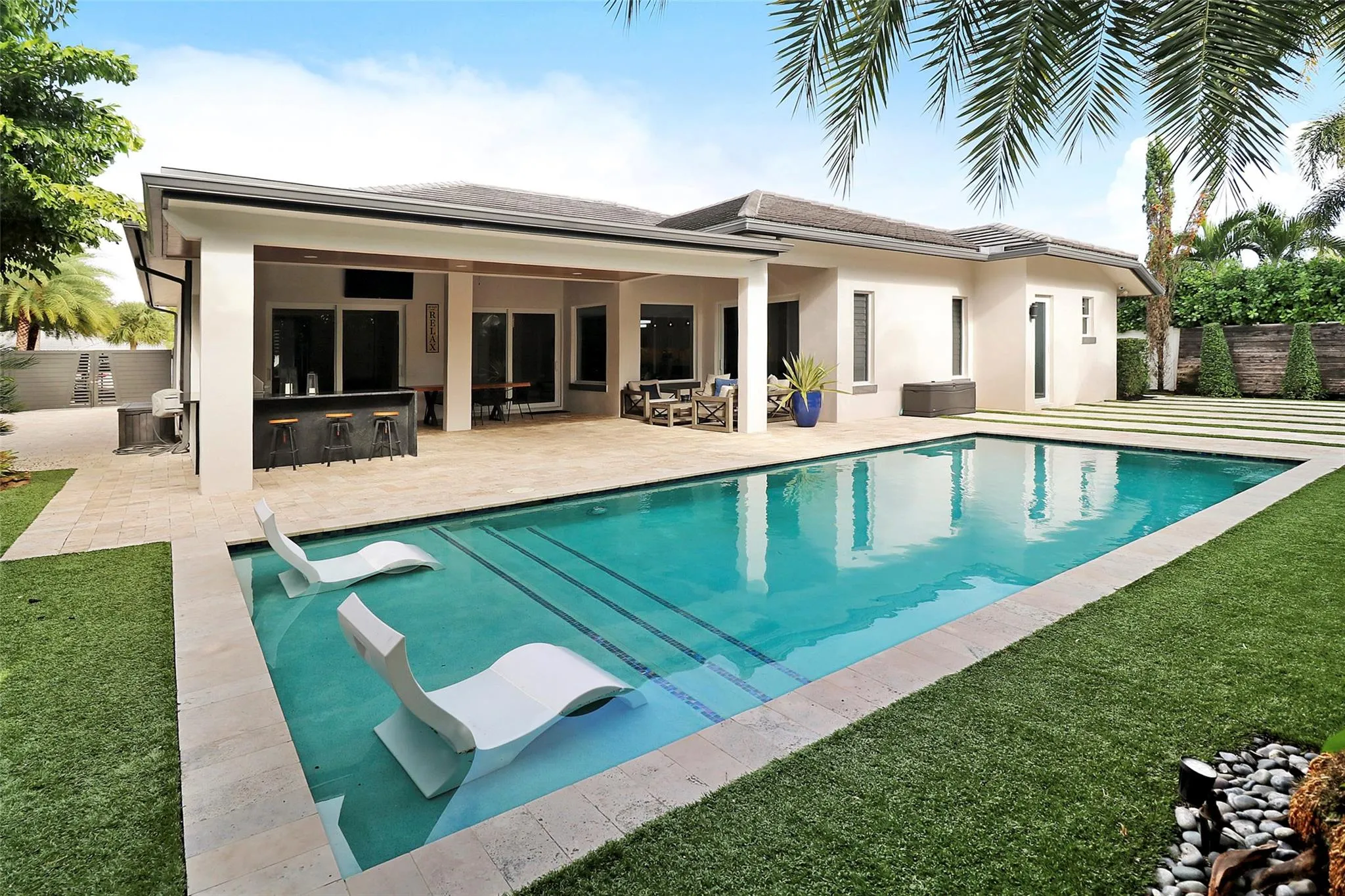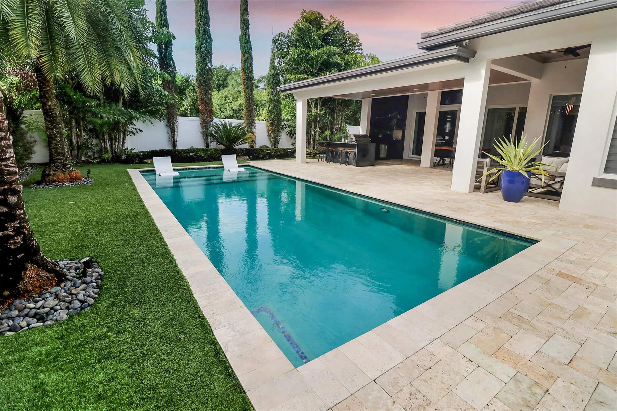 Discover unparalleled luxury in this custom-built residence, perfectly situated in East Boca Raton’s most desirable location. Meticulously crafted with premium upgrades—foam insulation, double-insulated walls, designer lighting, Sonos sound, and full security system. A chef’s kitchen showcases custom soft-close cabinetry, Crystallo stone surfaces, induction cooktop, KitchenAid appliances, and an elegant storage-rich island. The primary suite features a stunning Agatha stone accent wall and bespoke closets. Enjoy a resort-style outdoor oasis with a quartzite-clad summer kitchen, dual BBQs, travertine pavers, saltwater pool, custom shed, and PGT impact doors and windows.