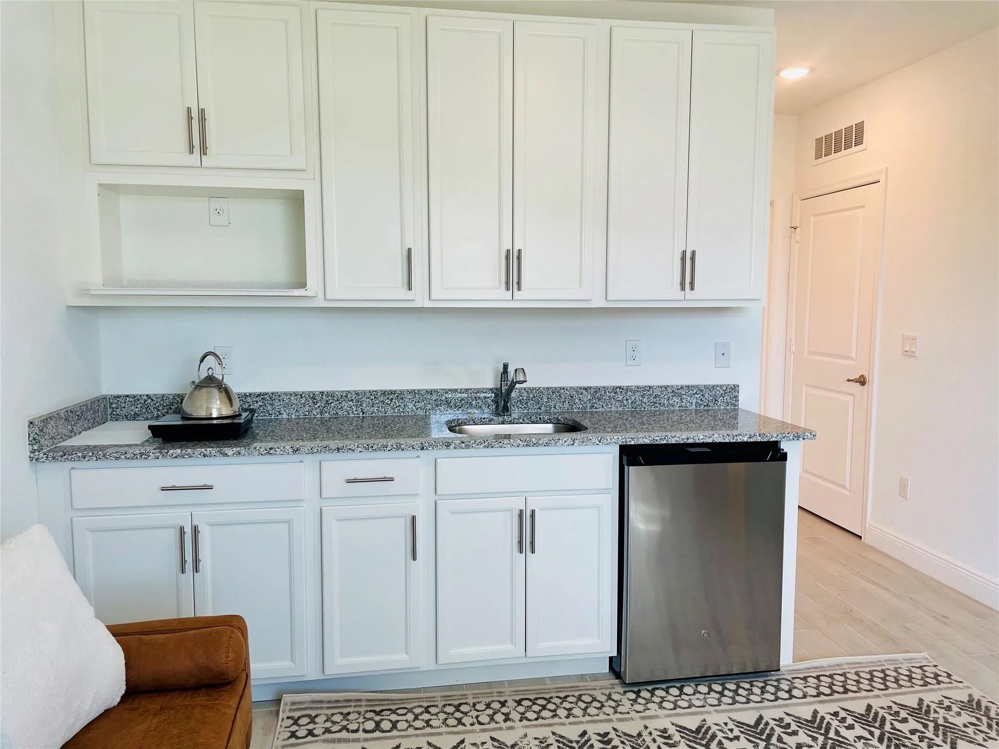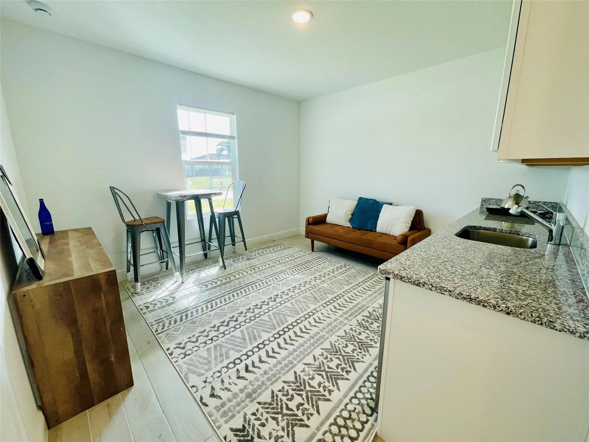 Nothing like this. A beautiful, brand-new 1-bedroom/1-bath mother-in-law suite attached to a single-family home with a separate entrance welcomes you. The unit comes with a full bathroom, a full bedroom featuring a decent-sized closet with plenty of cabinetry, a granite countertop, soft-closing drawers in the kitchen and bathroom, wood-like tile flooring, and hurricane-impact doors and windows. Living room/ kitchen equipped with a mini fridge, microwave, and personal cooktop. Can be rented furnished or unfurnished. Comes with utility and internet included. Located in a very convenient location, close to Turnpike, I-95, and shops and entertainment.