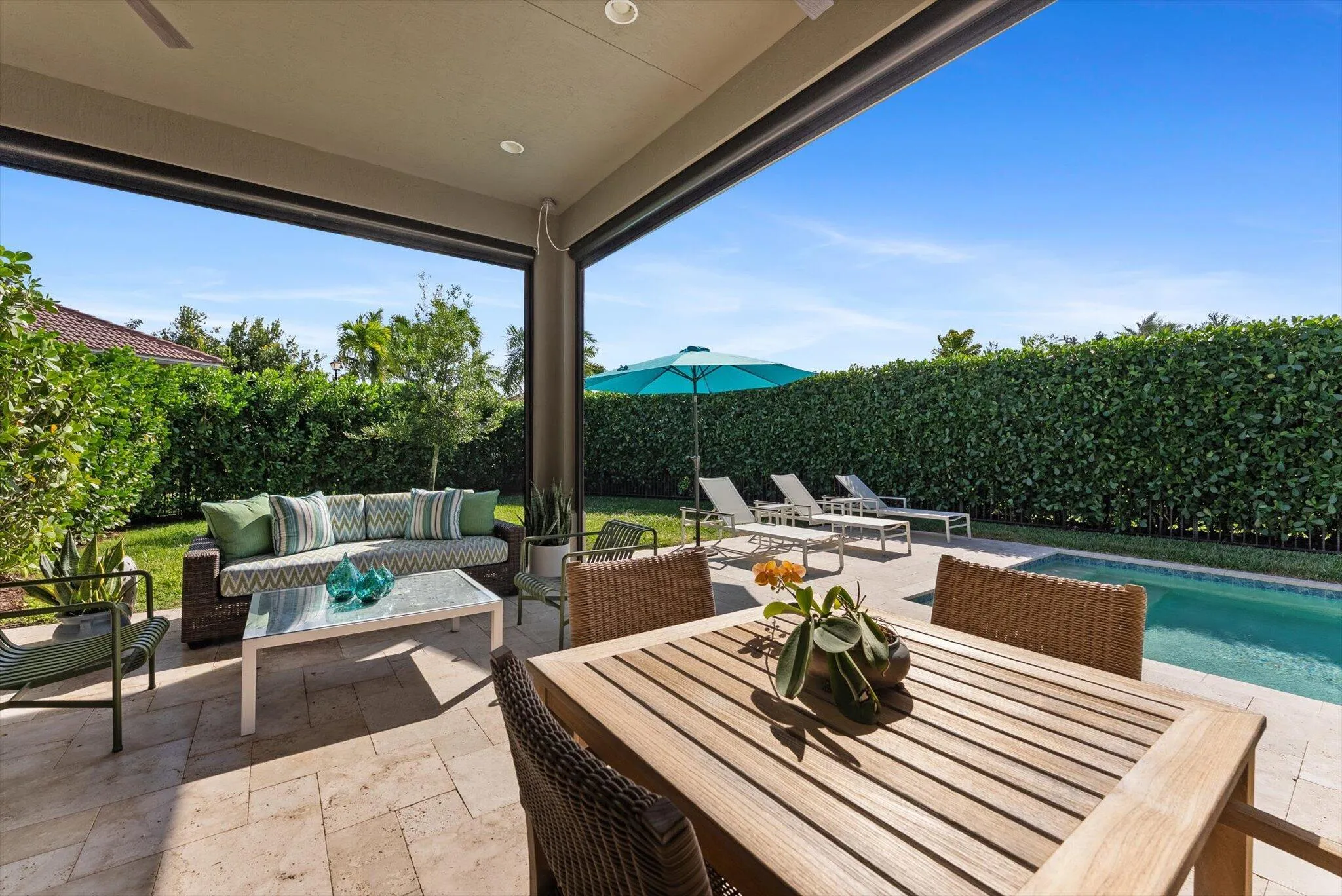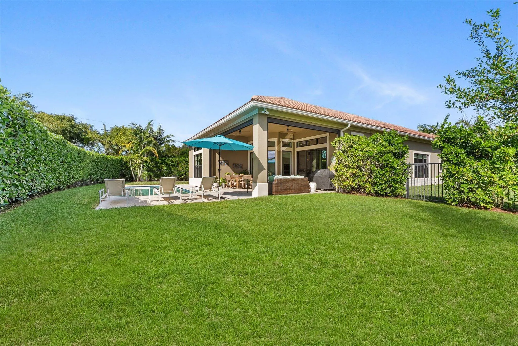 A rare opportunity to own a highly upgraded Everett model situated on one of the most desirable lots in this 55+ community. This gracious home welcomes you with an elegant foyer featuring tray ceilings and contrasting inlaid tile that flows seamlessly into a spacious great room with double tray ceilings. The chef’s kitchen is a standout, offering upgraded cabinetry, nearly 11 feet of island space with cabinetry on both sides, a premium appliance package, generous pantry, RH Modern light fixtures, and a built-in beverage refrigerator–ideal for entertaining.The luxurious primary suite features double tray ceilings, custom blackout drapery, a California Closets designed walk-in closet plus an additional closet dedicated to shoes and accessories