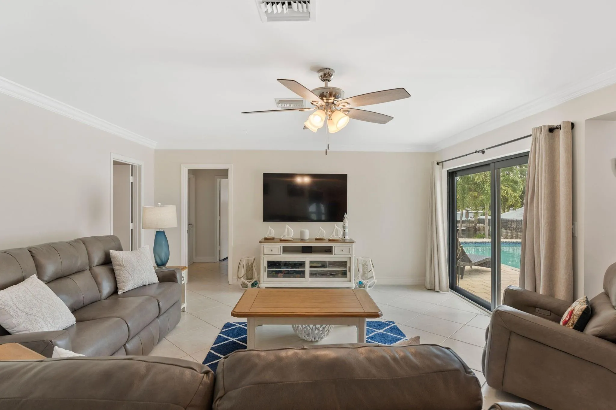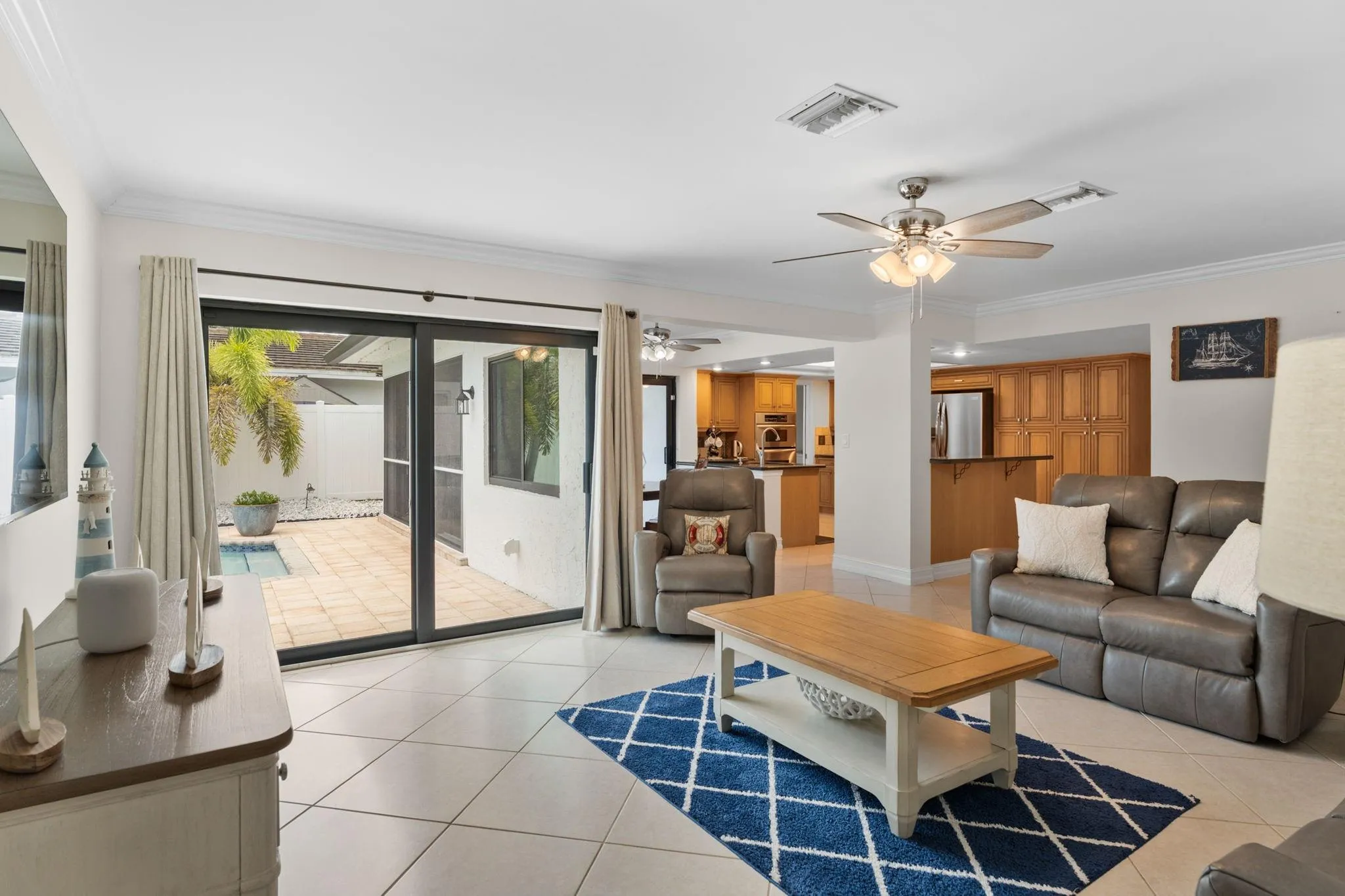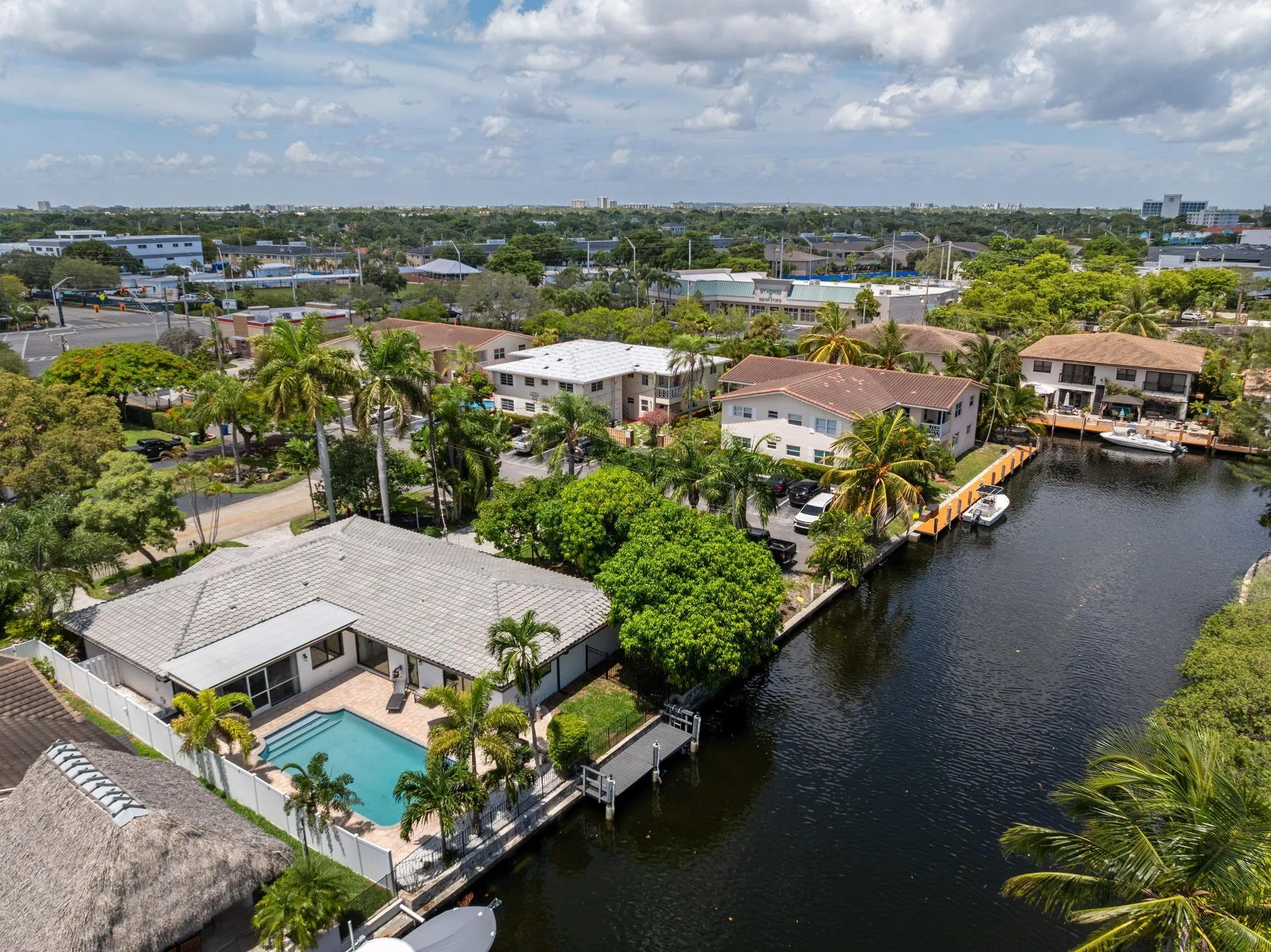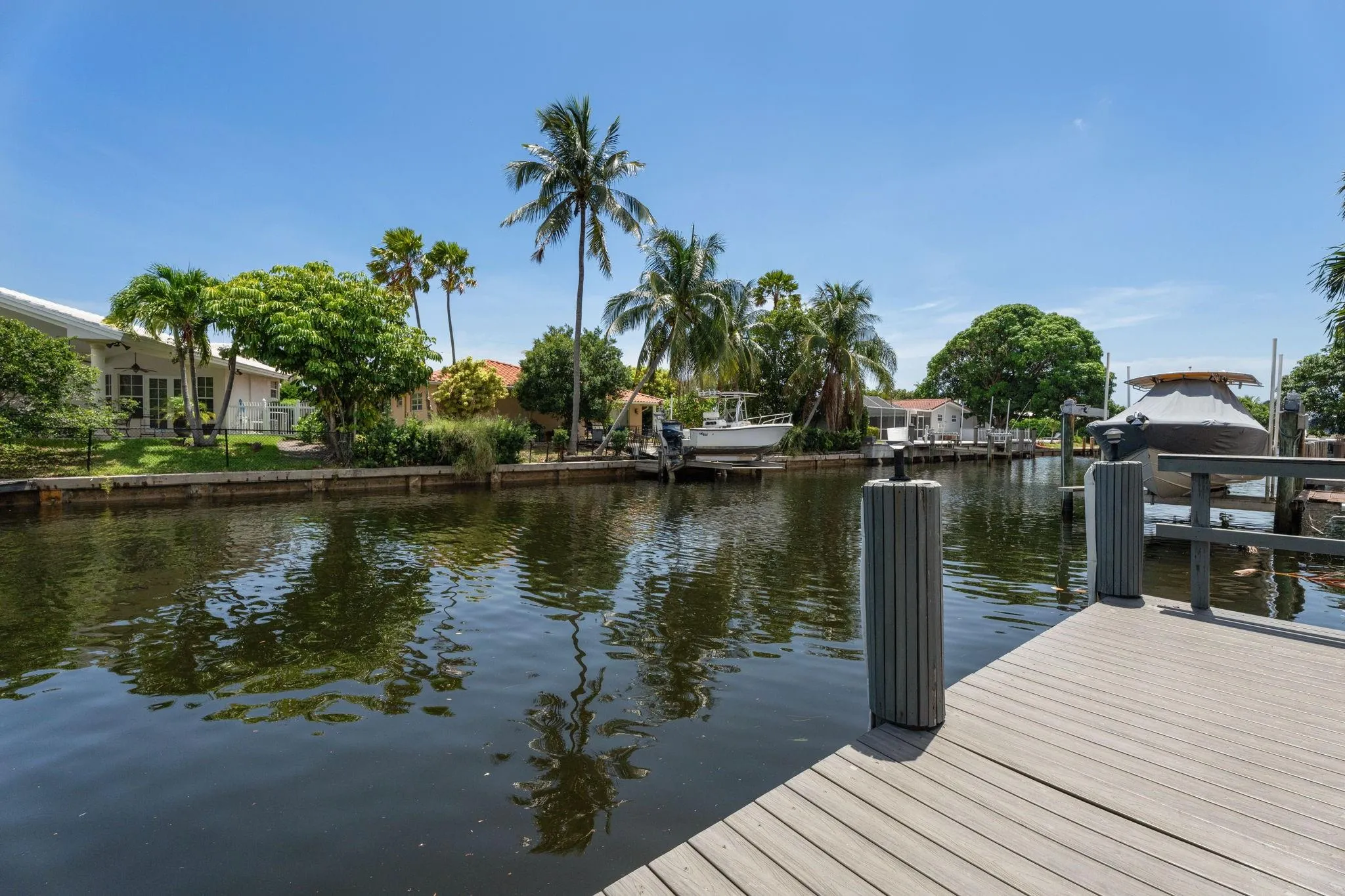 Waterfront living in the highly desirable Landings waterfront neighborhood! This 3 bedroom, 2.5 bath home offers 100’ of water frontage with two fixed bridges, a brand-new roof, and impact windows & doors. The eat-in kitchen with granite counters overlooks the pool and water views enjoyed from the kitchen, living, dining, and primary bedroom. Other upgrades include a newer Trex dock, new seawall footers, new electrical panels, a whole-house surge protector, and screened patio surrounded by tropical landscaping and fruit trees. Located on a quiet cul-de-sac just minutes from top schools, shopping, dining, and beaches!