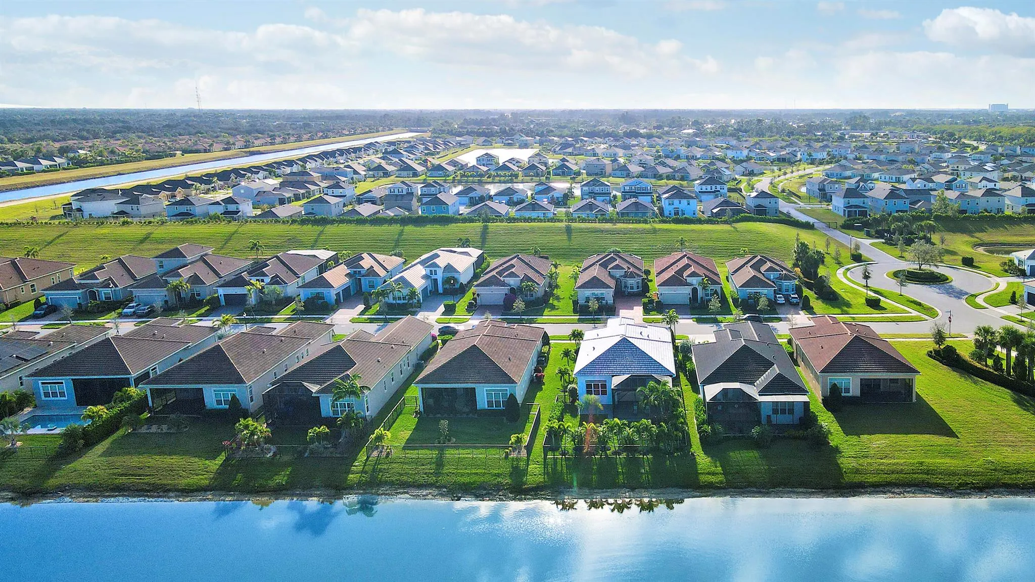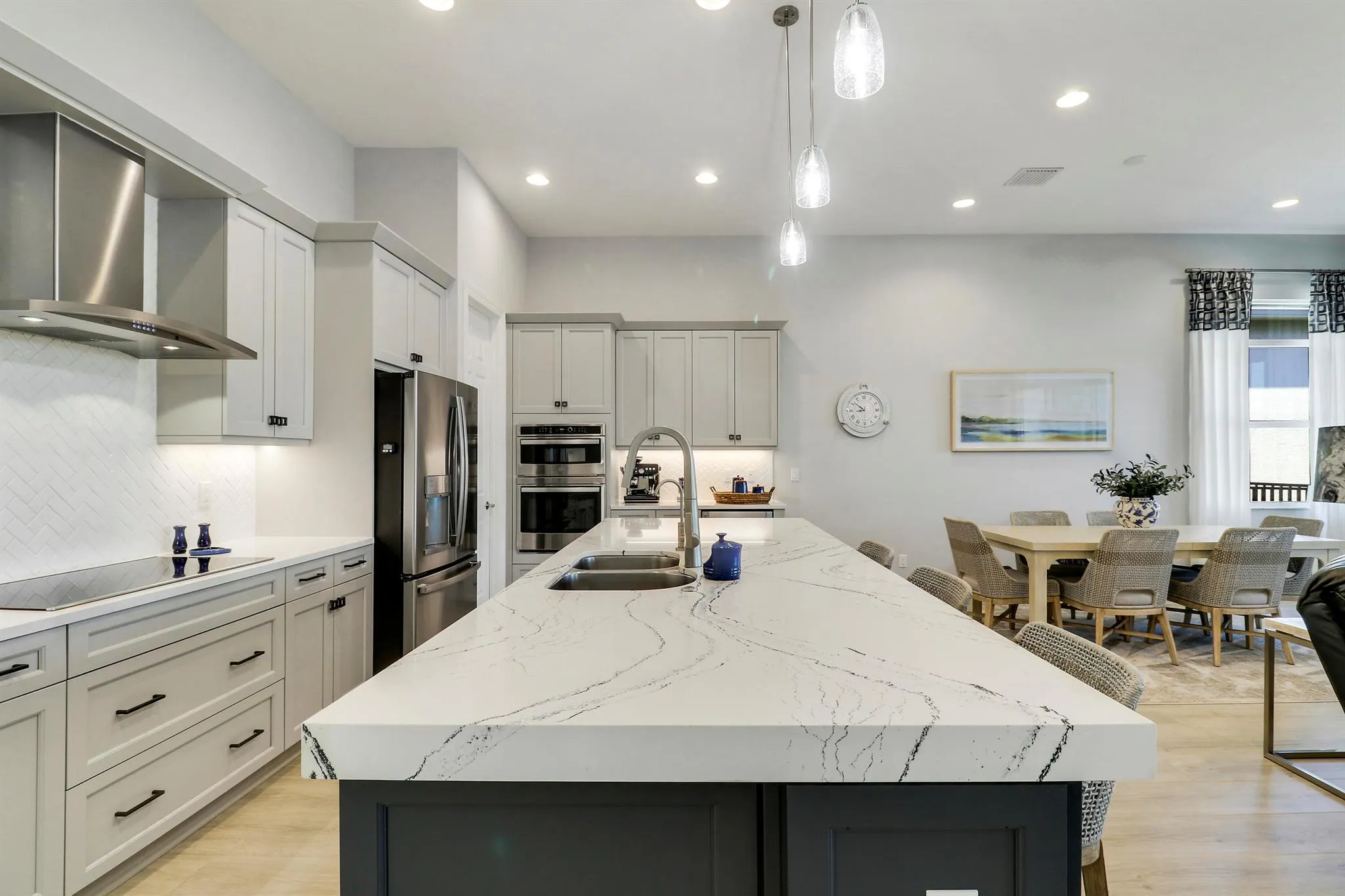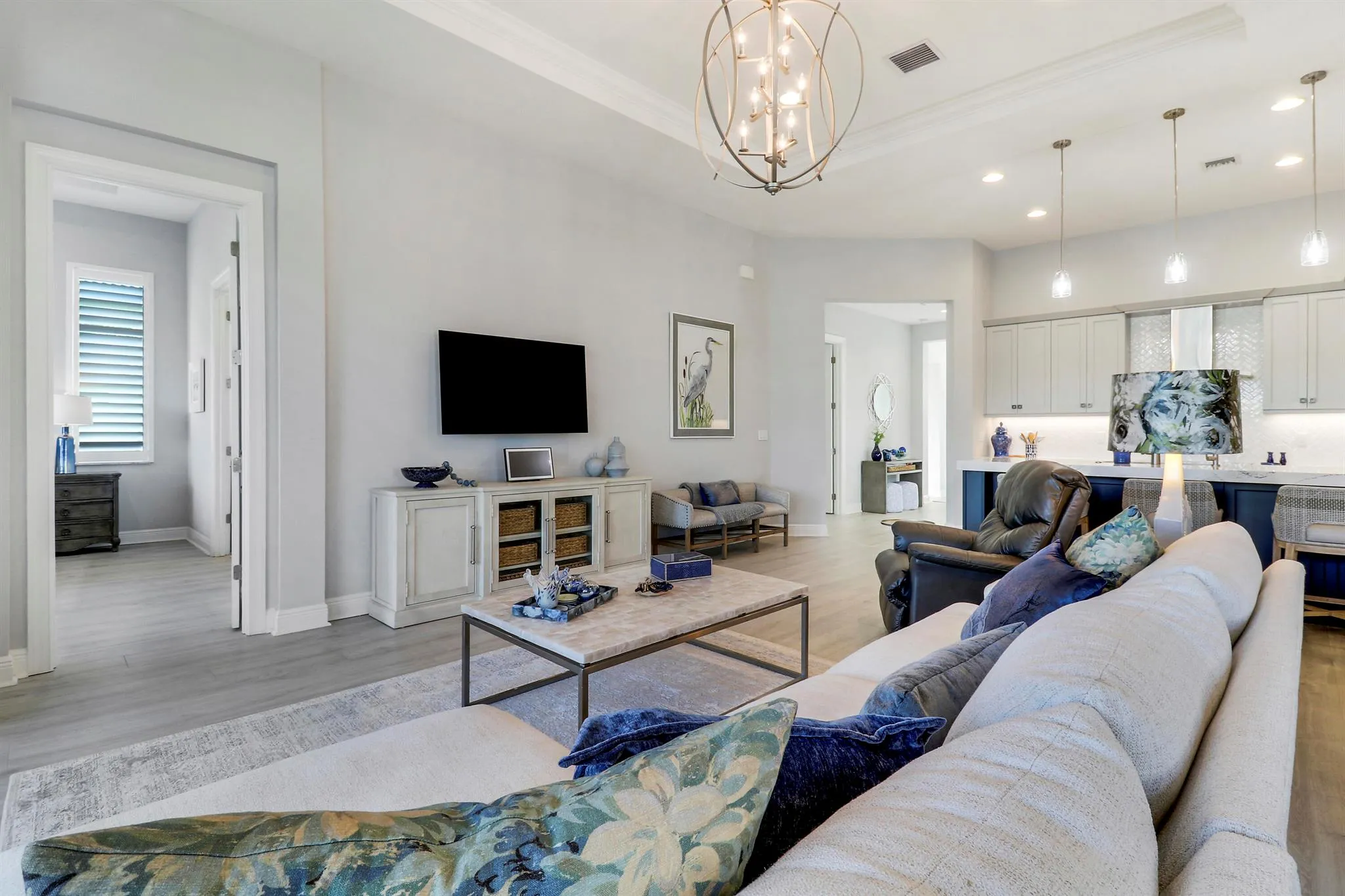 EVER POPULAR LAGO PLAN ON A LAKEFRONT LOT IN THE 55+ COMMUNITY OF CRESSWIND AT VERANO! This 3BR/2BA/2CG home built in 2022 has elegant and sophisticated finishes and is ready for its new owners to enjoy! Luxury plank flooring extends throughout the home and you will most definitely appreciate the attention to detail in this lakeside gem! The open great room is the heart of the home with a large kitchen featuring light grey cabinetry, quartz counters, oversized island w/ room for seating, pendant lighting, tile backsplash, walk-in pantry, upgraded SS appliances including 36” induction cooktop, designer hood-fan, wall oven, convection microwave plus a beverage fridge! The living area has access out to an extended screened lanai complete with electric sunscreen & prime views over the lake!