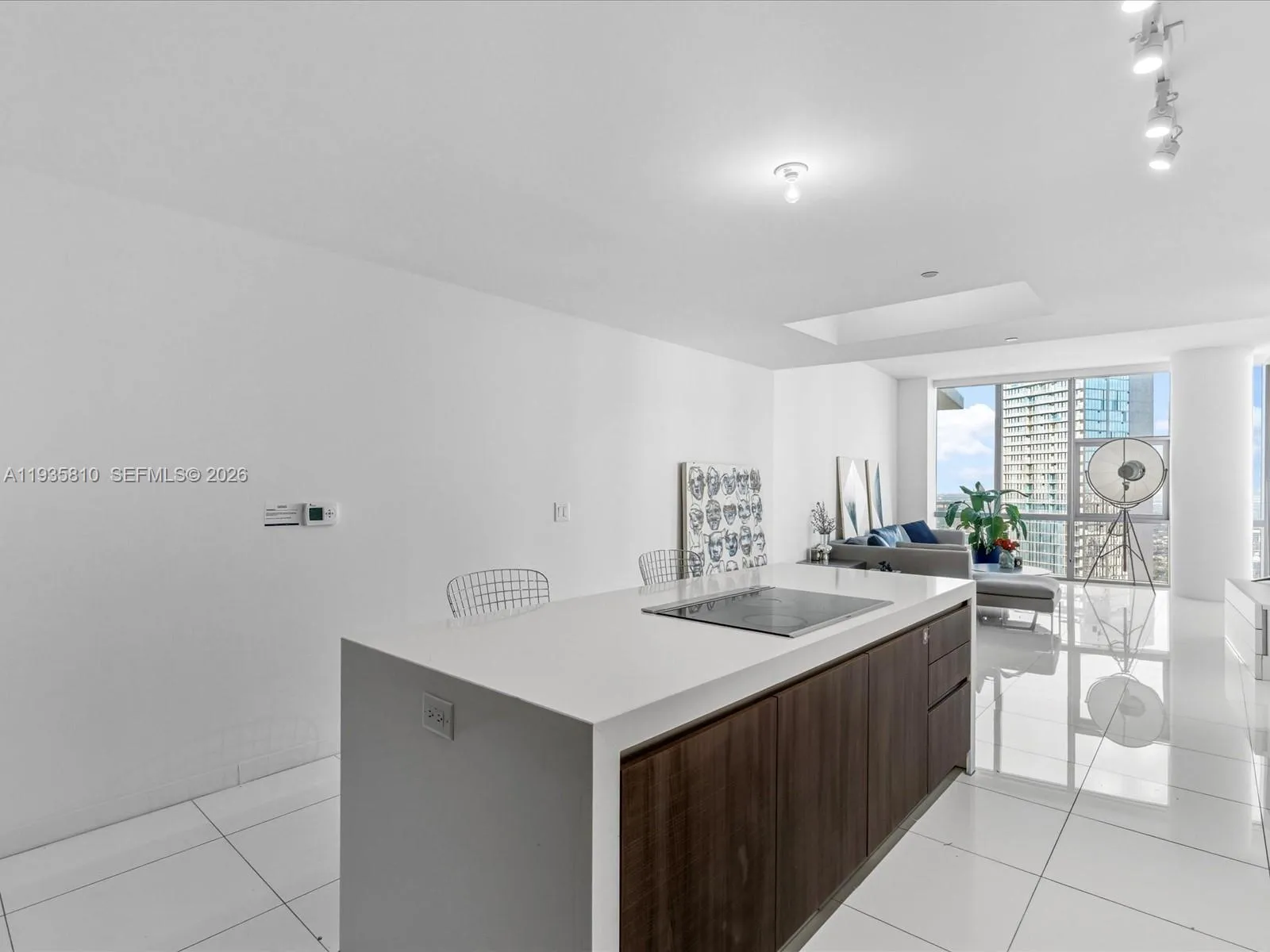 A rare opportunity to own one of the most desirable lines in the building, offered in pristine, new condition on the highest floor prior to the penthouse. This premier corner residence features unobstructed views and exceptional natural light throughout.rnrnA private den / office allows the home to function as a true 4-bedroom, 4-bathroom residence, ideal for both full-time living and refined entertaining. Floor-to-ceiling glass walls frame breathtaking city and skyline views from every angle, creating a bright and expansive living experience.rnrnThe open-concept kitchen is appointed with top-of-the-line appliances, including a Sub-Zero refrigerator, Wolf cooktop and oven, and Bosch dishwasher, complemented by sleek modern cabinetry and premium finishes throughout.rnrnParamount Miami Worldcenter is a full-service luxury building offering world-class amenities, ideally located in the heart of Miami’s new area Park west