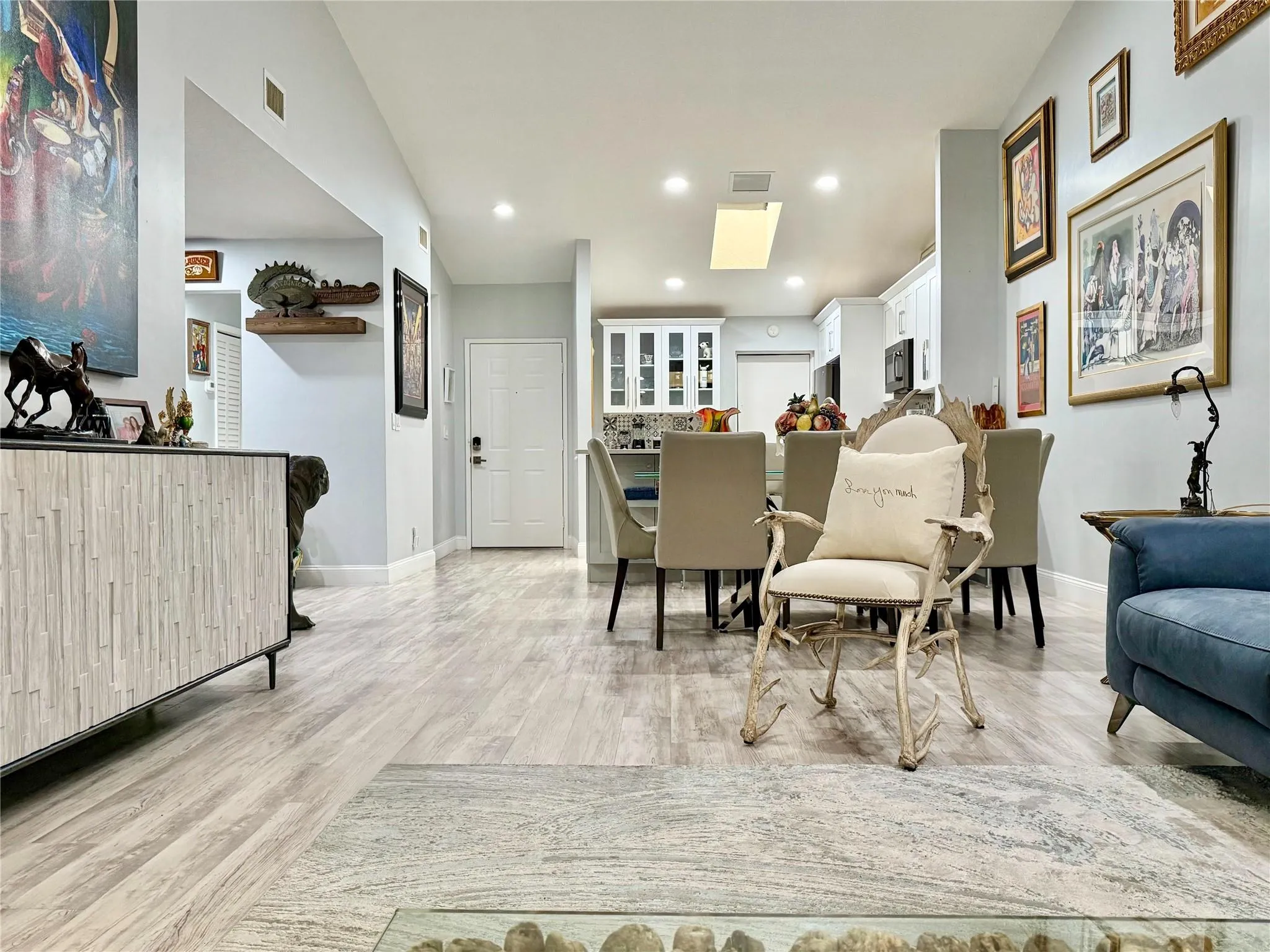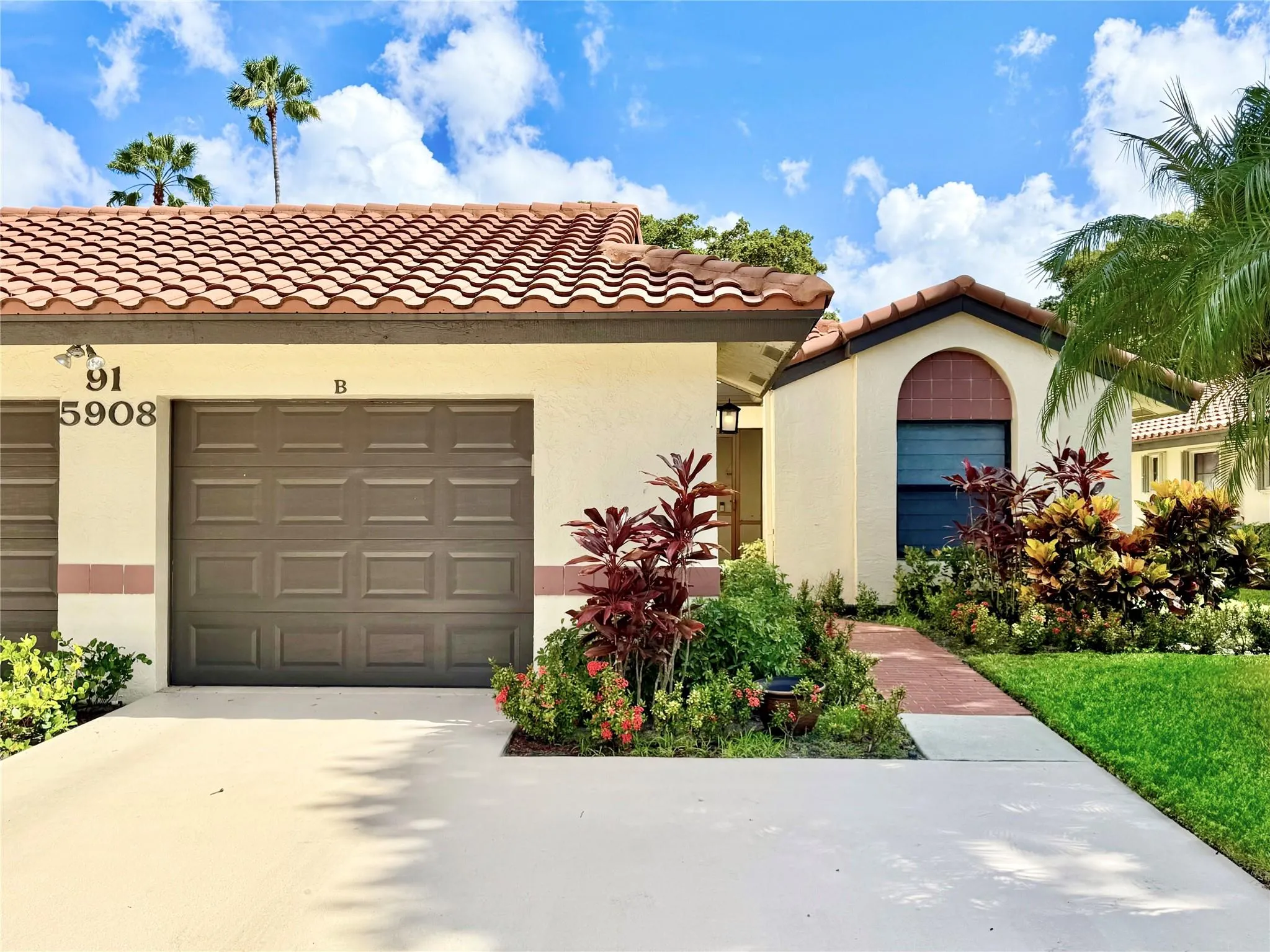 STUNNING RENOVATED VILLA!! 3-Bed 2-Bath with Versatile Den. Located in PALM CHASE LAKES on Quiet Cul-De-Sac. IMPRESSIVE KITCHEN Features Skylight, NEW High-End GE Black Stainless Appliances & Built-in Pantry Wine/Coffee Bar. Quartz Countertops/Snack Bar & Beautiful Backsplash Design. HURRICANE IMPACT WINDOWS & DOORS. GREAT ROOM Vaulted Ceilings, NEW Recessed Lighting/Fixtures/Ceiling Fans. NEW A/C SYSTEM & WATER HEATER (7/2025) NEW Electric Blinds including the Skylight & Vinyl Wood Plank Flooring. Luxurious Master Retreat w/Large Walk-in Shower/Closet. Huge (300 SF) GLASS ENCLOSED FLORIDA ROOM with A/C. NEW WASHER & DRYER. Oversized Garage, Attic & Utility Sink. Clubhouse includes Olympic Size Pool, Hot tub, Pickleball Courts & More! WALK TO PLACES OF WORSHIP! 55+ Community. Pets Welcome!