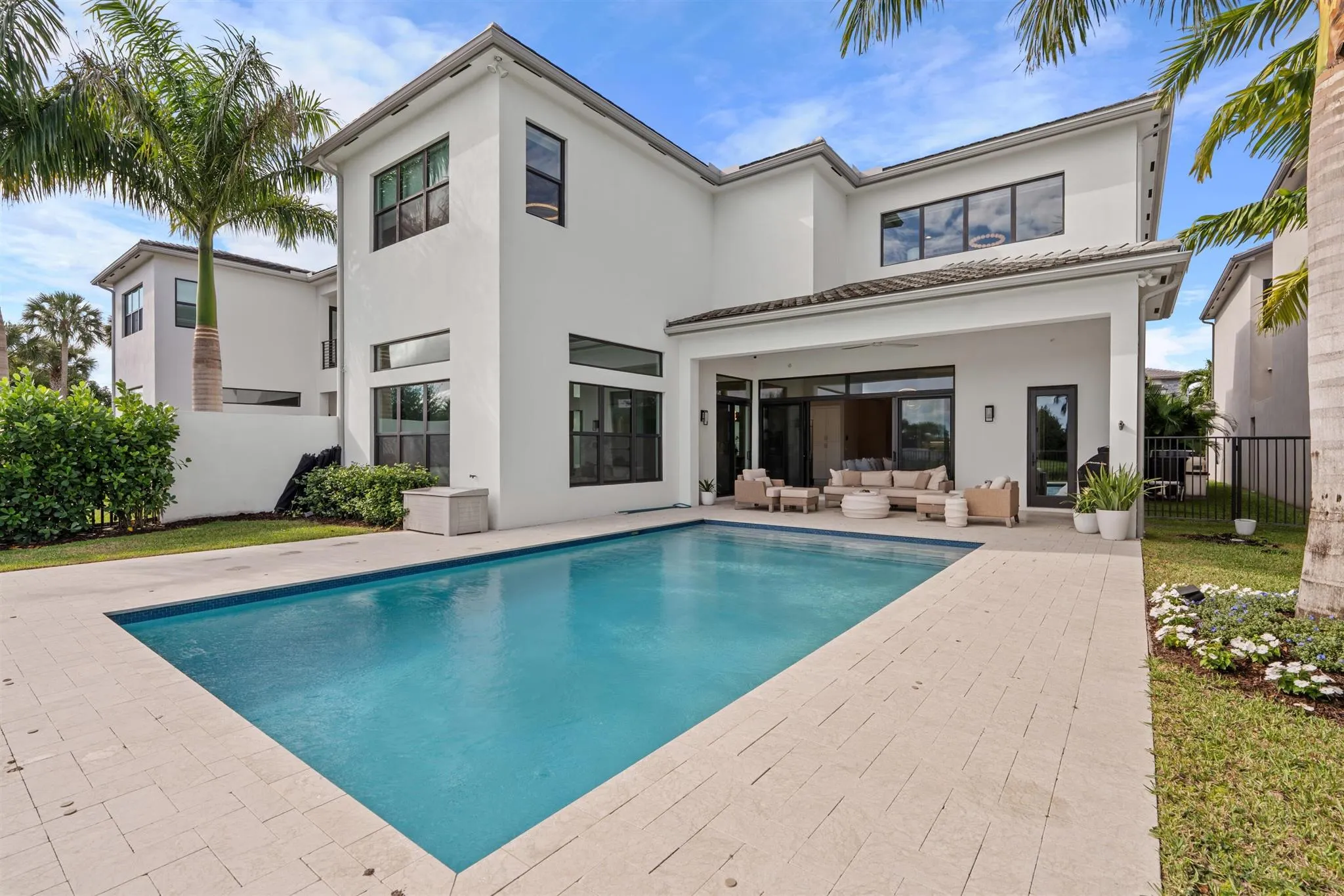 Unveiling this chic, 6-BR family haven with lakefront privacy. Live on a cul-de-sac street in the highly-desired Boca Bridges community with lavish clubhouse facilities, near Boca’s acclaimed schools and upscale amenities. The sleek minimalism of the 5,799+/- sq. ft. home, with its sleek kitchen, myriad gathering spaces, and large home theater bonus space, encourages family harmony and five-star entertaining.