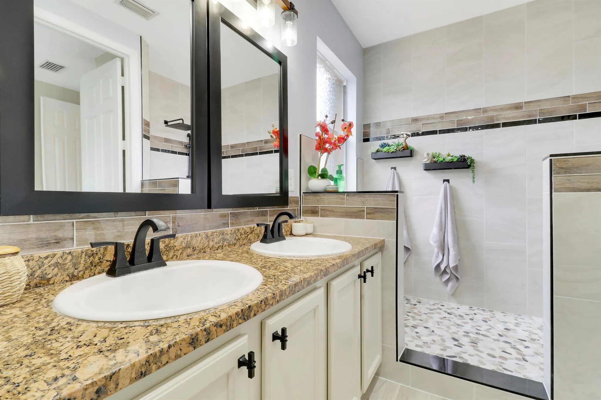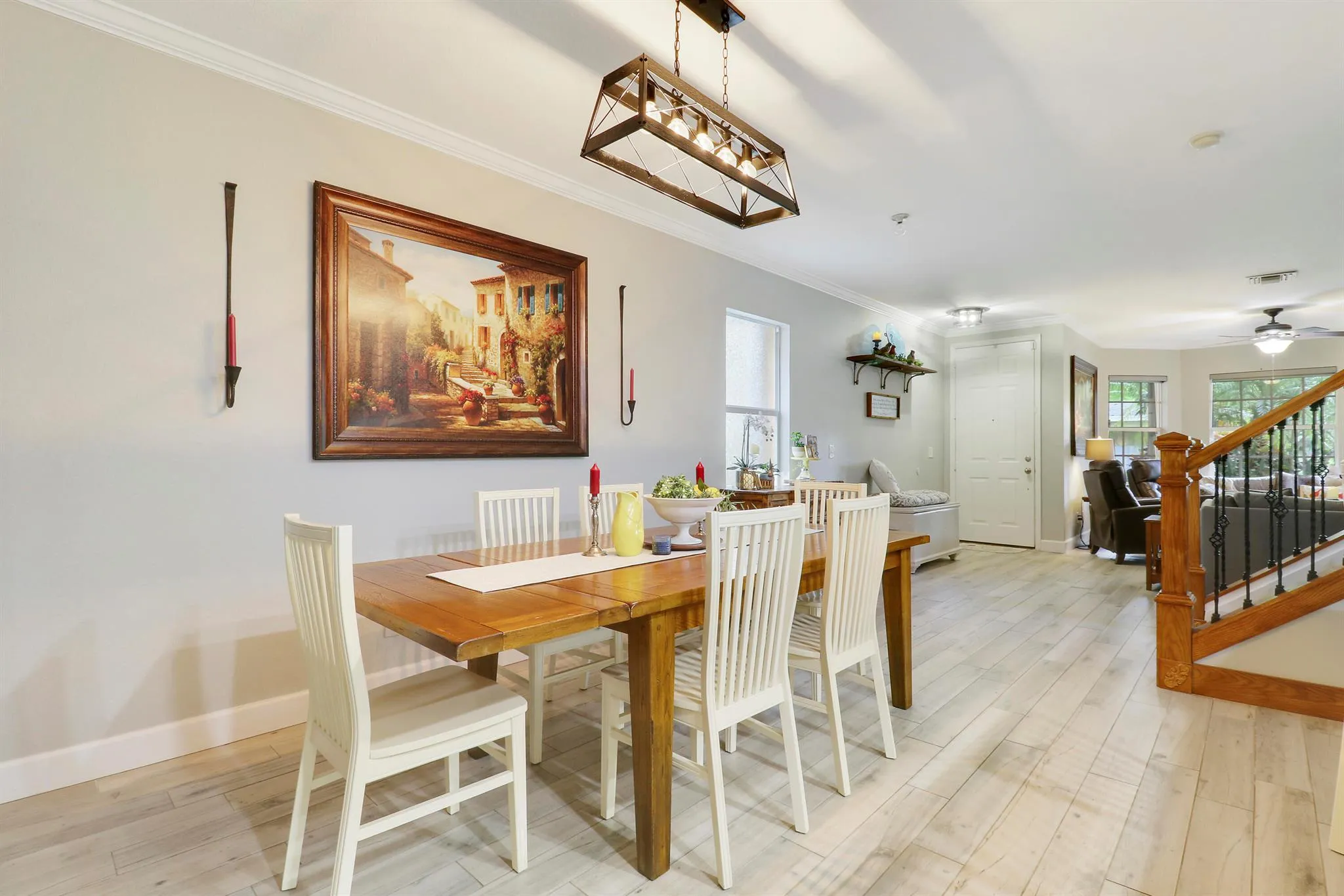 Move in ready home featuring a 2024 metal roof, updated flooring, fixtures, and bathrooms, private in-law suite with separate entrance, and accordion shutters for peace of mind. This property is thoughtfully designed for comfort and functionality. The in-law suite features a private entrance, living room, separate bedroom with full bath and a kitchenette. Steps outside of your front door you’ll find a 1.7-mile nature trail and a tranquil lake view immediately in front. The private green space behind the home provides a serene setting. A truly special opportunity for those seeking space, privacy, and convenience in one of the area’s most scenic settings.