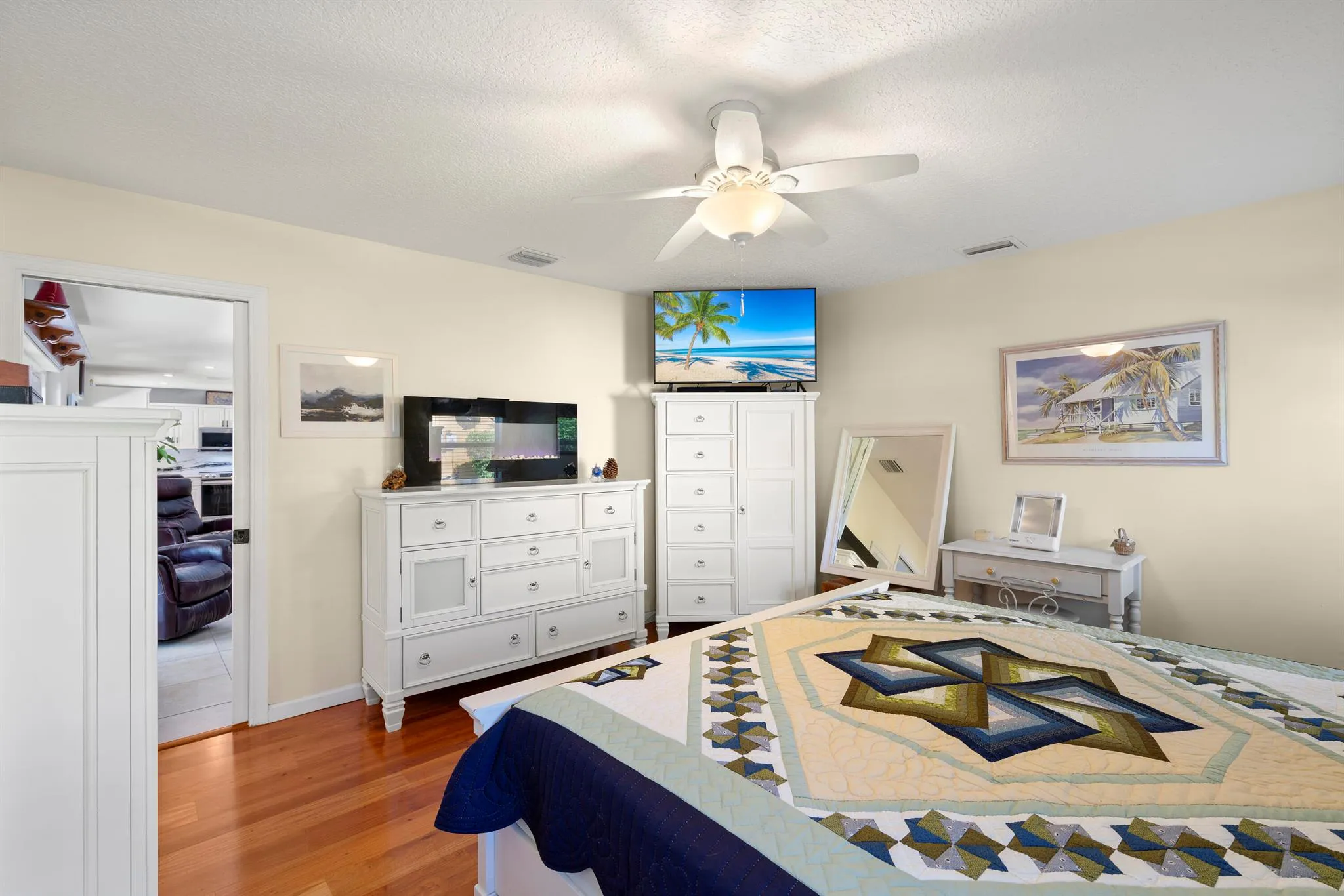 Welcome to this beautifully maintained 4-bedroom, 3-bath pool home located in the desirable La Mancha neighborhood of Royal Palm Beach. Lovingly cared for by its original owner, this home is now ready to welcome its next chapter.One of the standout features of this unique property is the private mother-in-law suite, complete with its own entrance and bathrooma”ideal for extended family, guests, a home office, or potential rental flexibility. Inside, the home has been tastefully updated and offers a warm, inviting feel with hardwood floors throughout most of the living areas and luxury vinyl flooring in the remaining spaces.The updated kitchen is a true showstopper, featuring white wood cabinetry and stunning solid surface Dolomite countertops and backsplash. Step outside to your