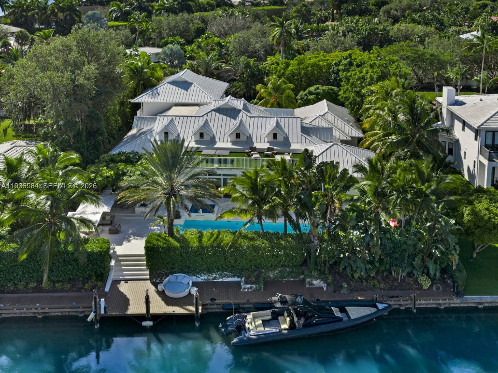 Step Inside With Me! This Coastal Contemporary waterfront retreat in the private Bay Point community greets with 21′ ceilings and abundant natural light. The recently renovated residence delivers the ideal open layout with vaulted ceilings, 6 bedrooms, media room, club room, and a chef-caliber gourmet kitchen. The luxe primary suite impresses with dual dressing rooms, morning bar, and Carrara marble spa bath. The outdoor experience is pure resort living—lush landscaping frames an oversized pool, jacuzzi, sauna, and a rooftop terrace for sunset entertaining. This made-for-a-boater home boasts 120 FT of premium water frontage, dock, and boat lifts. Positioned on a rare 20,124 Sq.ft lot, this offering is completed by 2-car garage/gym, generator, and motor court.