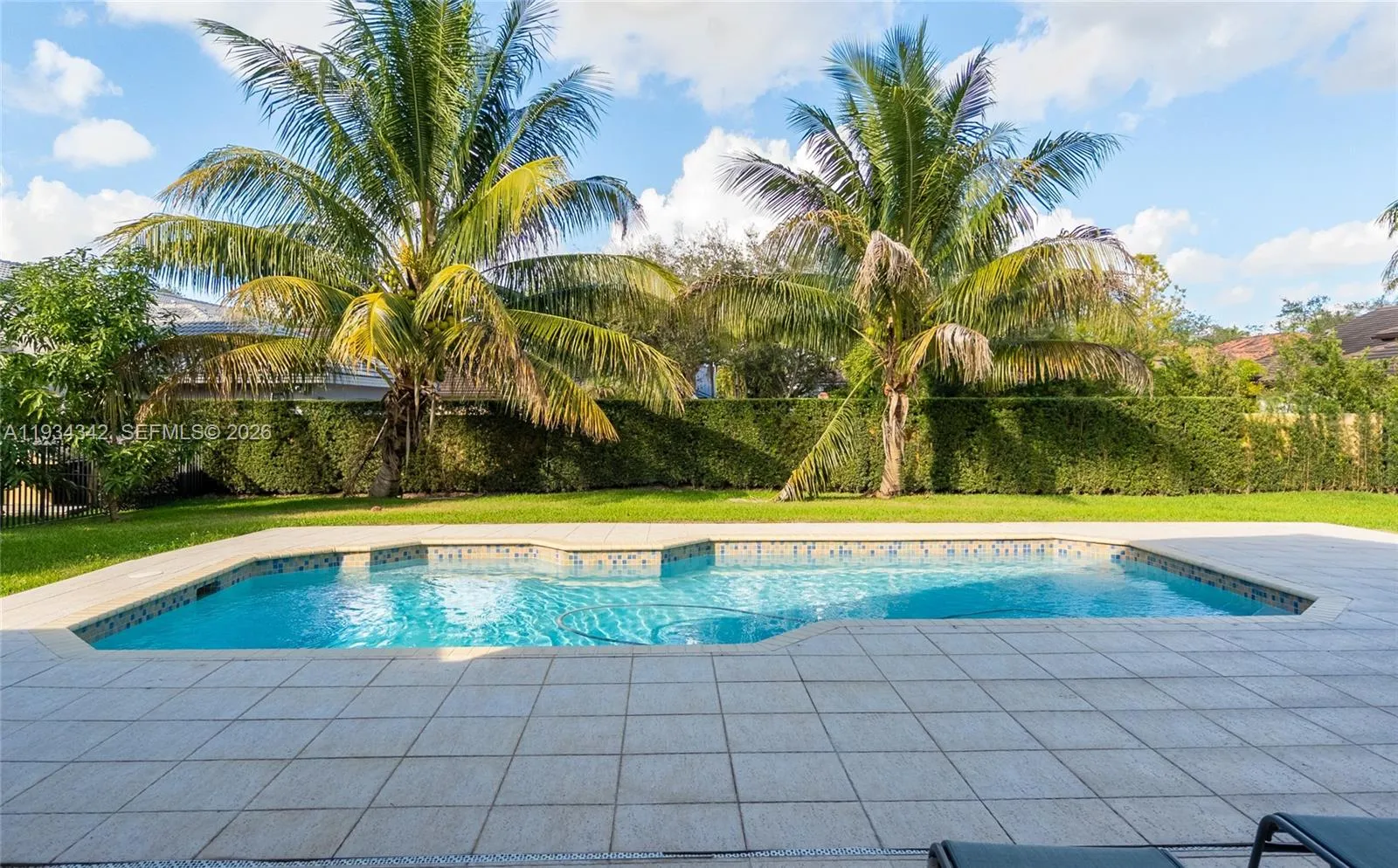Spacious and well-maintained 3-bedroom, 2.5 bath plus a den that can easily be converted into an additional bedroom, office, or flex space. The interior showcases elegant marble flooring throughout, enhancing the home’s bright and open feel. Spacious living areas flow effortlessly into the outdoor space, where you’ll find a private pool, ideal for entertaining or relaxing year-round. The home also includes a convenient interior laundry room. Situated on an oversize lot, the property offers generous outdoor space and privacy. Pride of ownership is evident throughout this move-in-ready home, making it an excellent opportunity for buyers seeking quality, functionality, and flexibility.