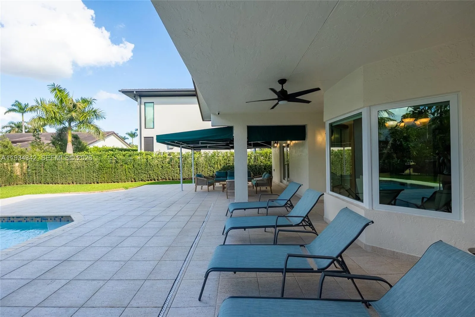 Spacious and well-maintained 3-bedroom, 2.5 bath plus a den that can easily be converted into an additional bedroom, office, or flex space. The interior showcases elegant marble flooring throughout, enhancing the home’s bright and open feel. Spacious living areas flow effortlessly into the outdoor space, where you’ll find a private pool, ideal for entertaining or relaxing year-round. The home also includes a convenient interior laundry room. Situated on an oversize lot, the property offers generous outdoor space and privacy. Pride of ownership is evident throughout this move-in-ready home, making it an excellent opportunity for buyers seeking quality, functionality, and flexibility.