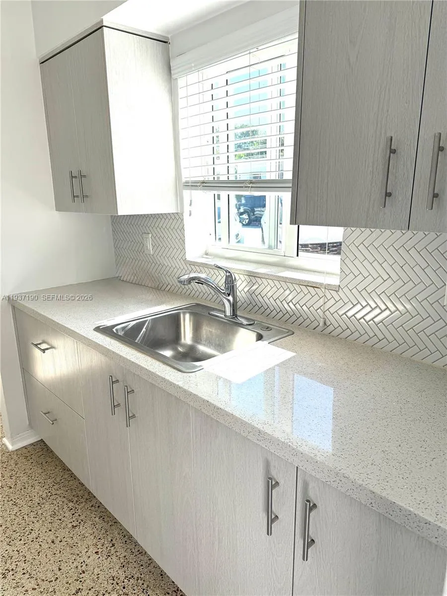 This large renovated one bedroom, one bath garden style ground floor unit is located in desirable Norht Beach. It features impact glass windows and doors, wiindow blinds and central air and heat. The unit also provides updated dining room and kitchen self closing cabinetry with granite counter tops and tile backsplashes. Appliances are new.rnThe bathroom has modern tile, updated fixtures and cabinetry. All electrical outlets and ceiling fixtures have been updated. There is an exclusive residents only onsite coin laundry. The unit has been freshly painted.